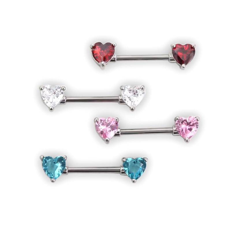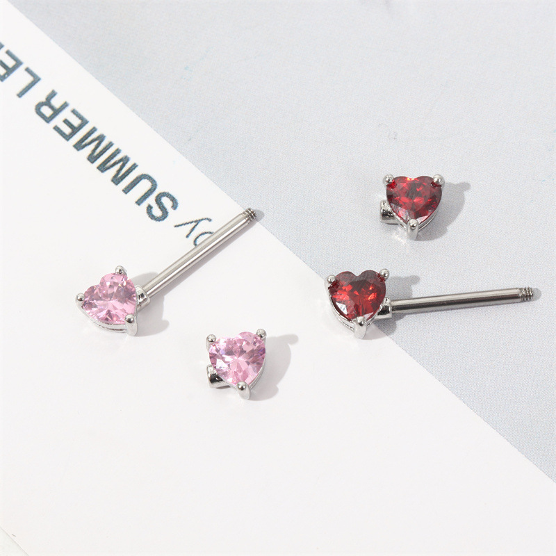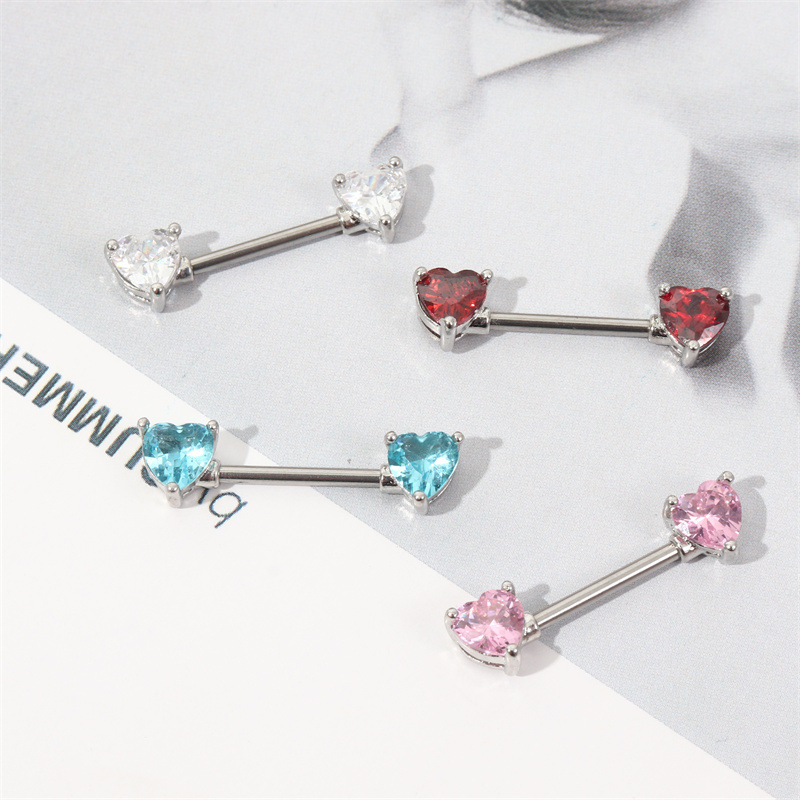 304 Cruach dhosmálta fáinne nipple, Croí, unisex & micrea réiteach zirconia ciúbach, dathanna níos mó le haghaidh rogha, 6x16mm, Díolta De réir PC
