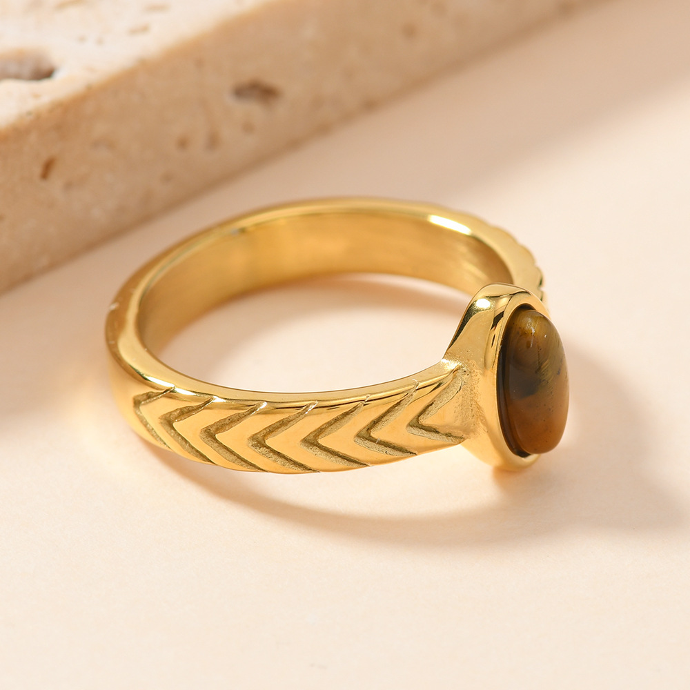 304 Cruach dhosmálta Ring Finger, le Cloch Nádúrtha, 18K ór plátáilte, jewelry faisin & unisex, Méid:8, Díolta De réir PC