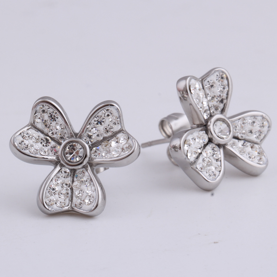 304 Cruach dhosmálta Graí Earring, Flower, do bhean & le rhinestone, 10mm, Díolta De réir Péire