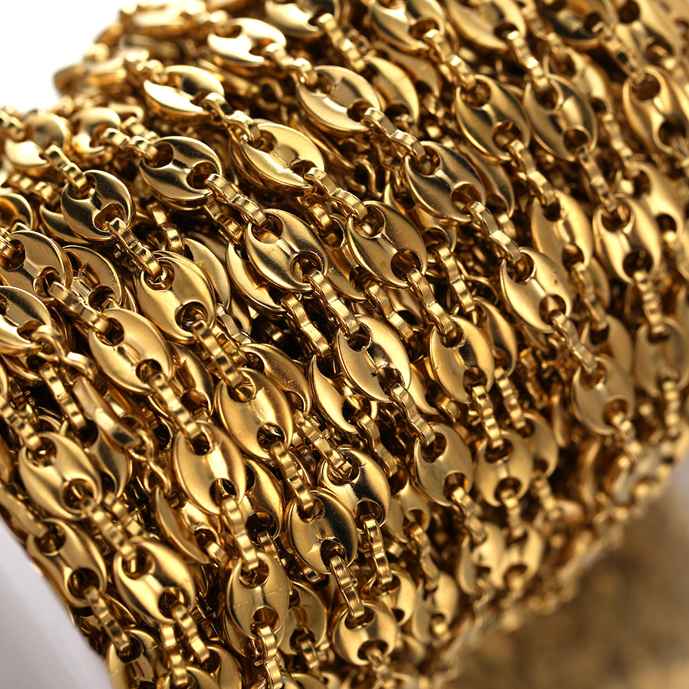 304 Cruach dhosmálta Muince Slabhra, plátáilte, DIY, dathanna níos mó le haghaidh rogha, 50m/Mála, Díolta De réir Mála