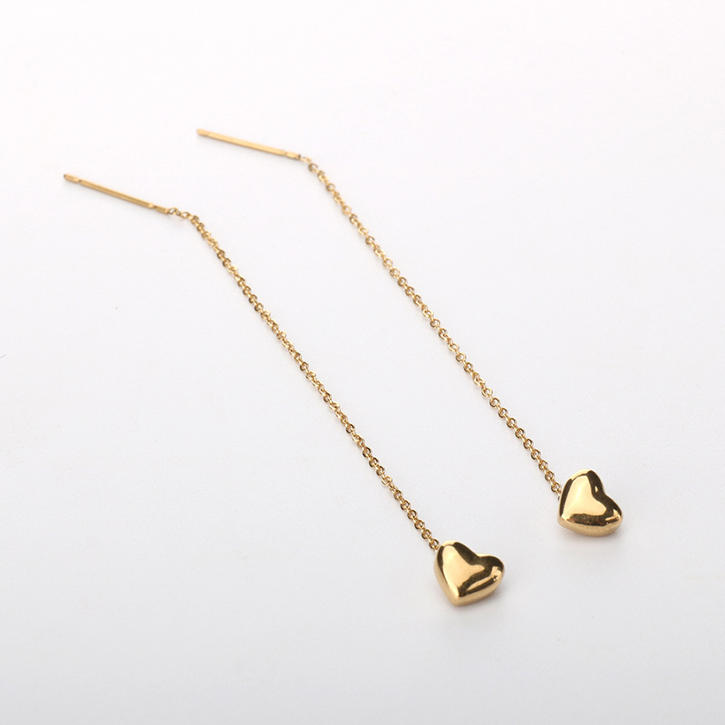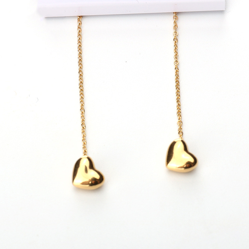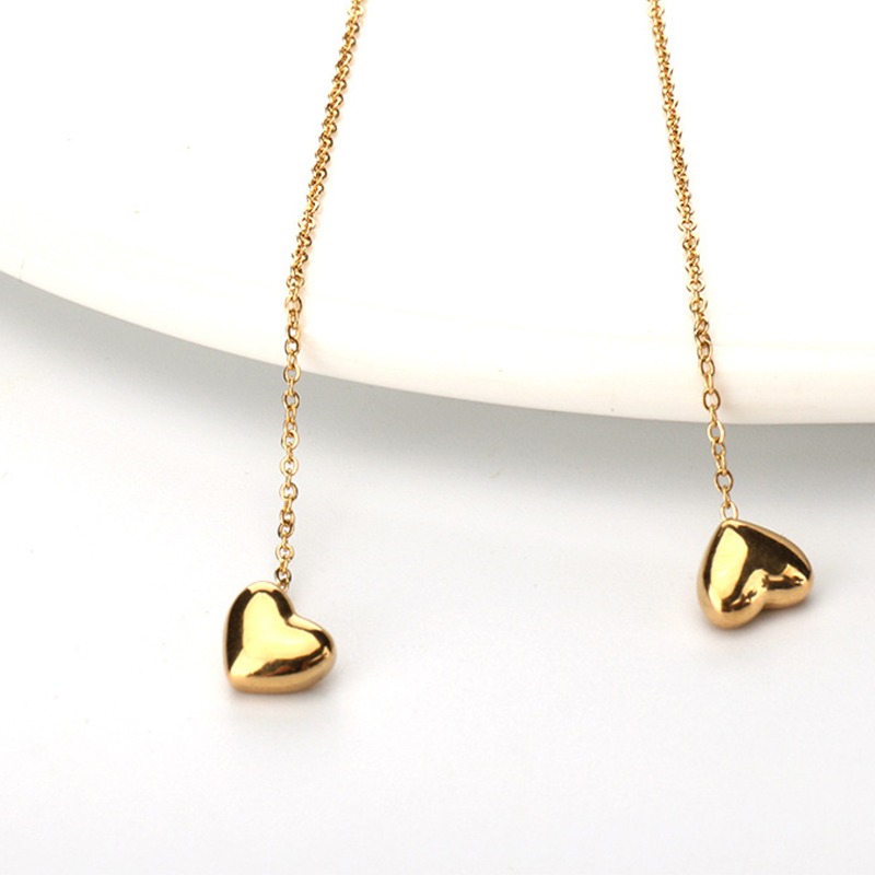 Cruach Tíotáiniam Snáithe Trí Earrings, Croí, dath an óir plated, jewelry faisin & do bhean, earring length 40-60mm, Díolta De réir Péire