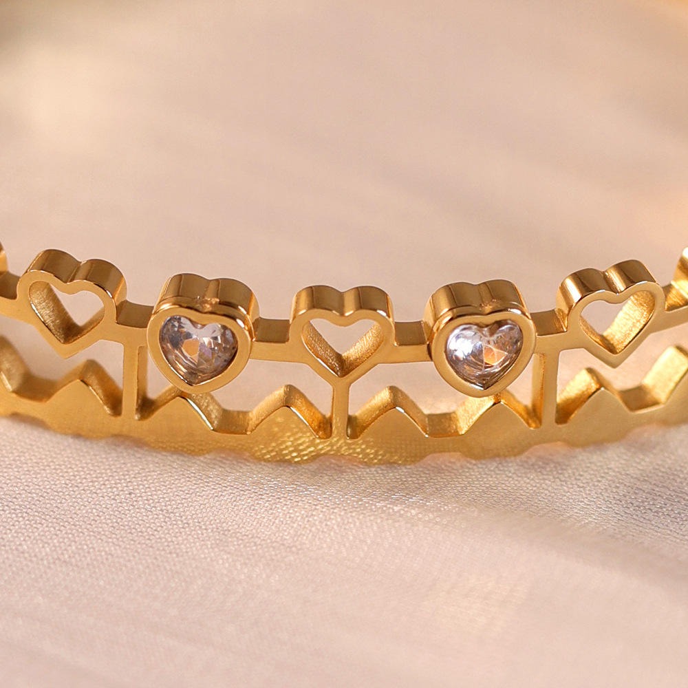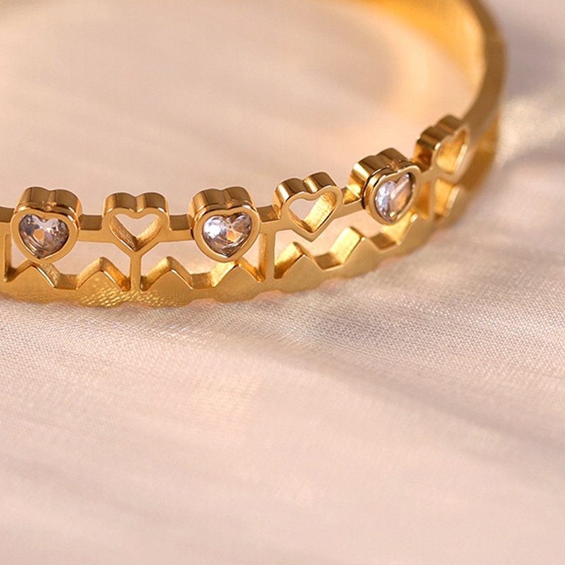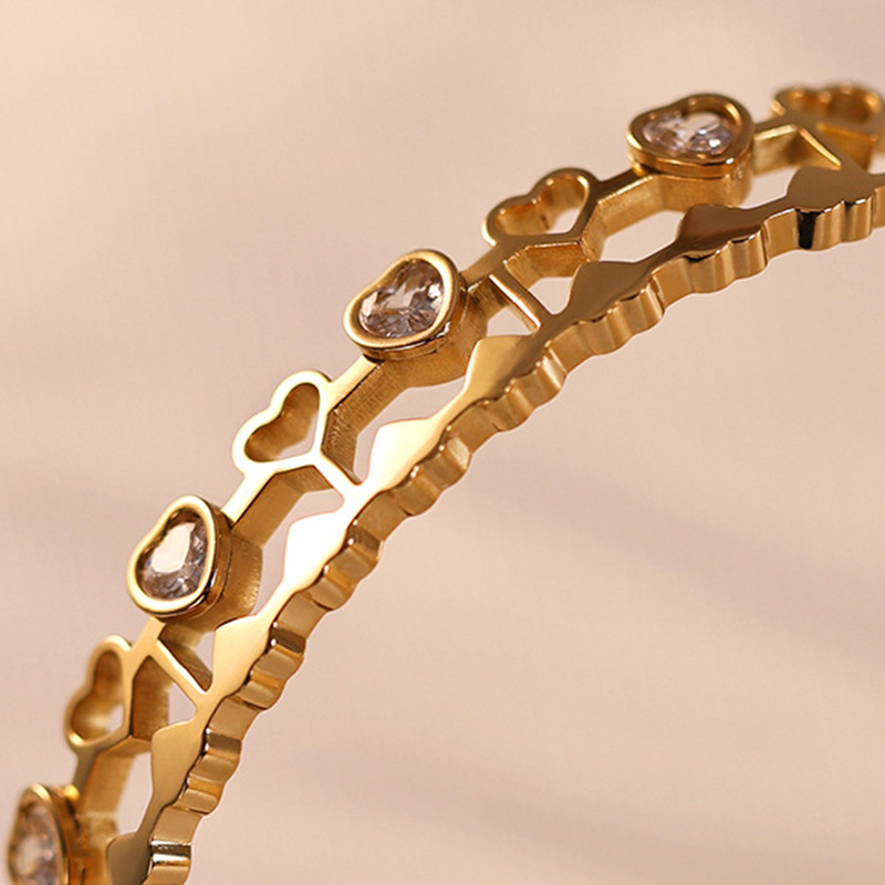 Cruach Tíotáiniam Bangle, Croí, dath an óir plated, do bhean & le rhinestone & log, Trastomhas Istigh:Thart 60mm, Díolta De réir PC