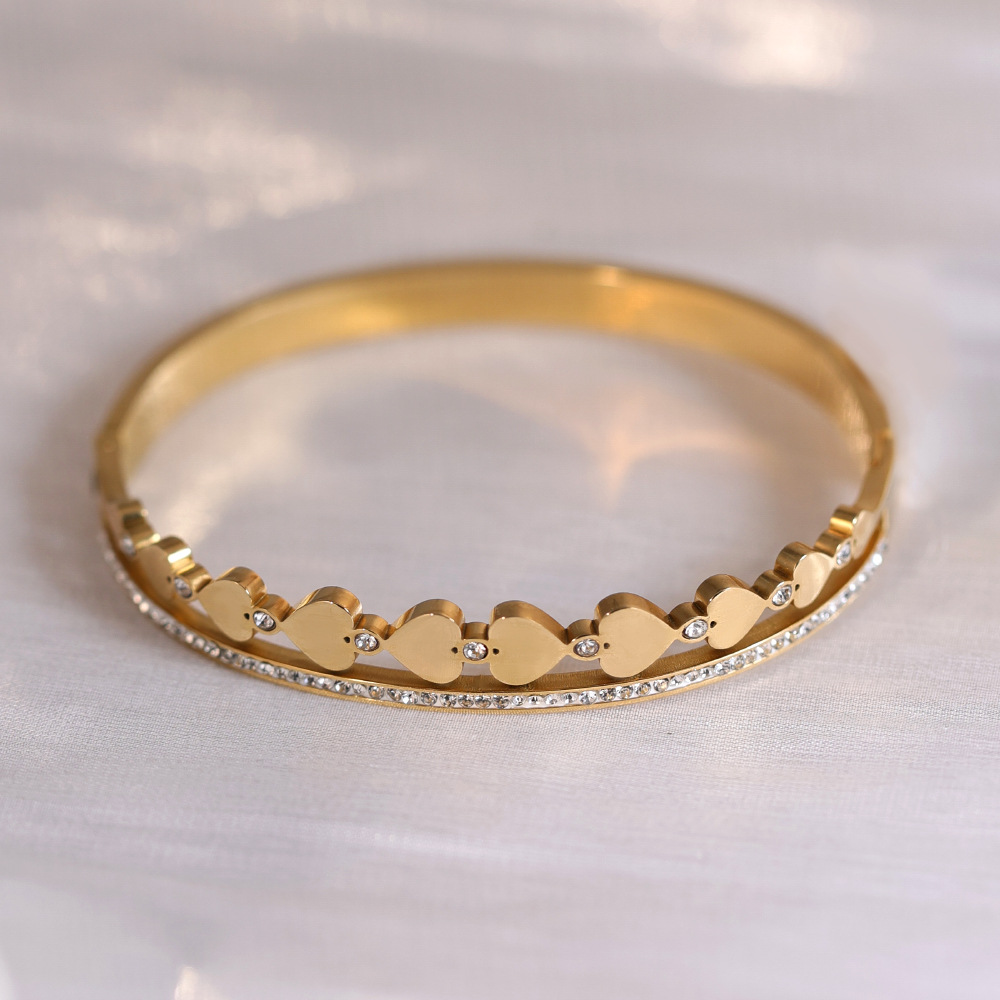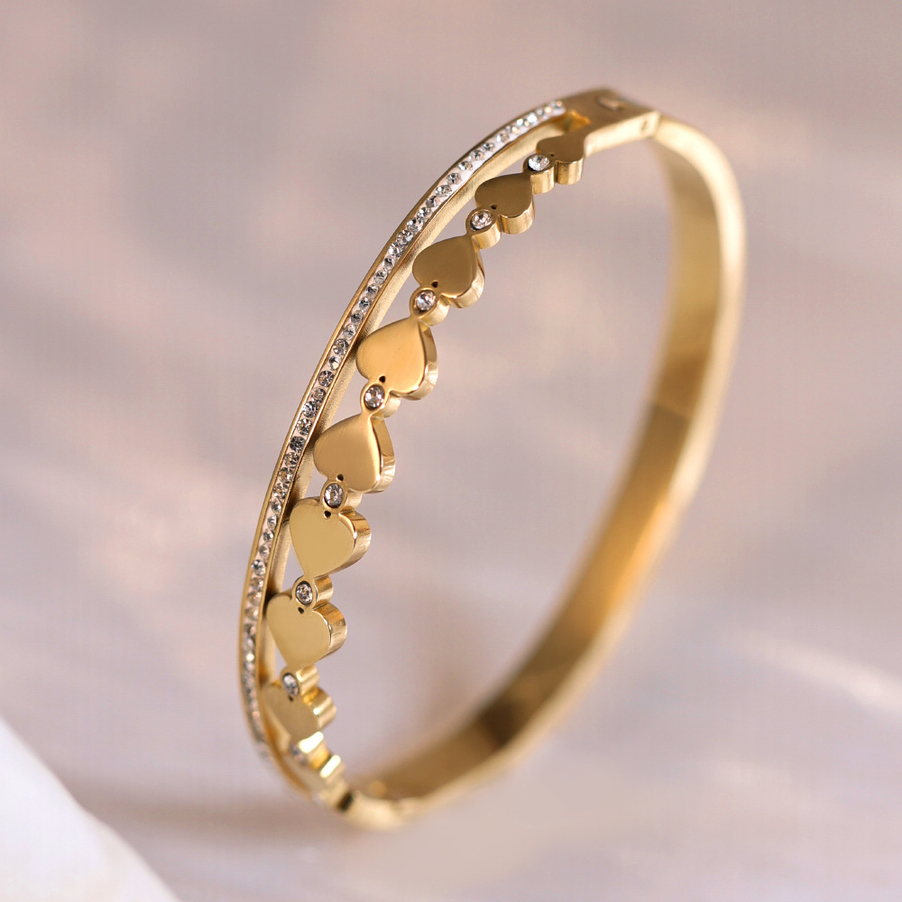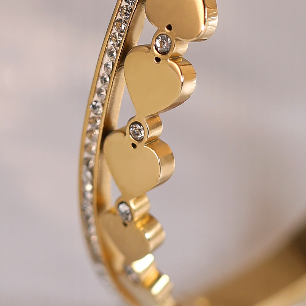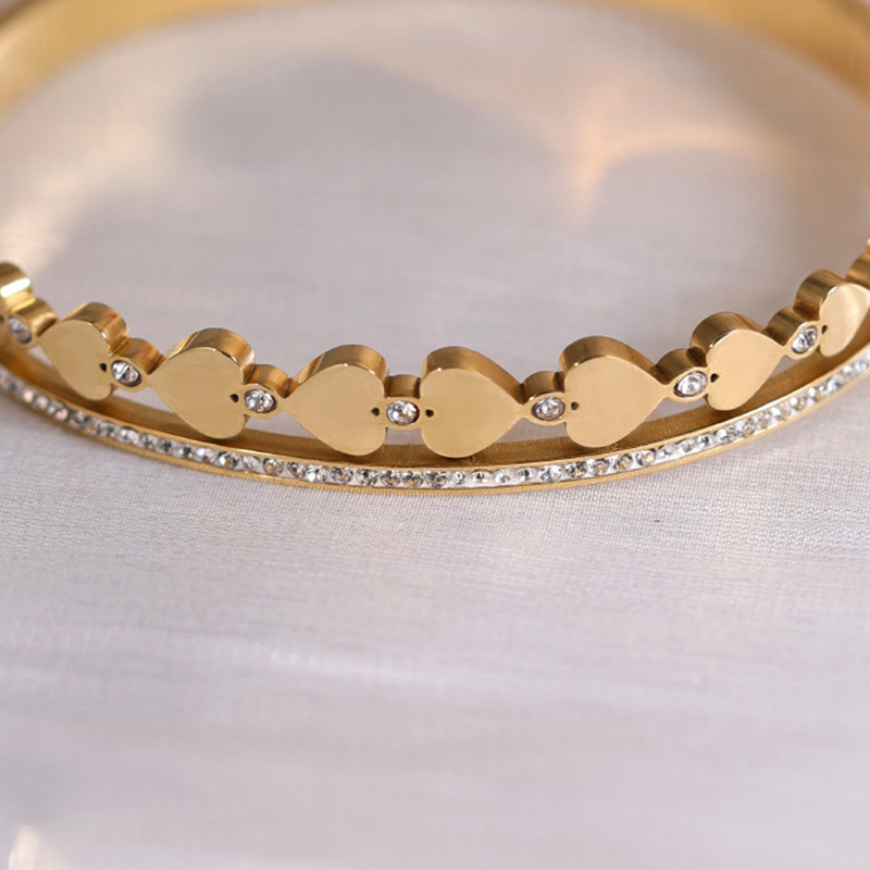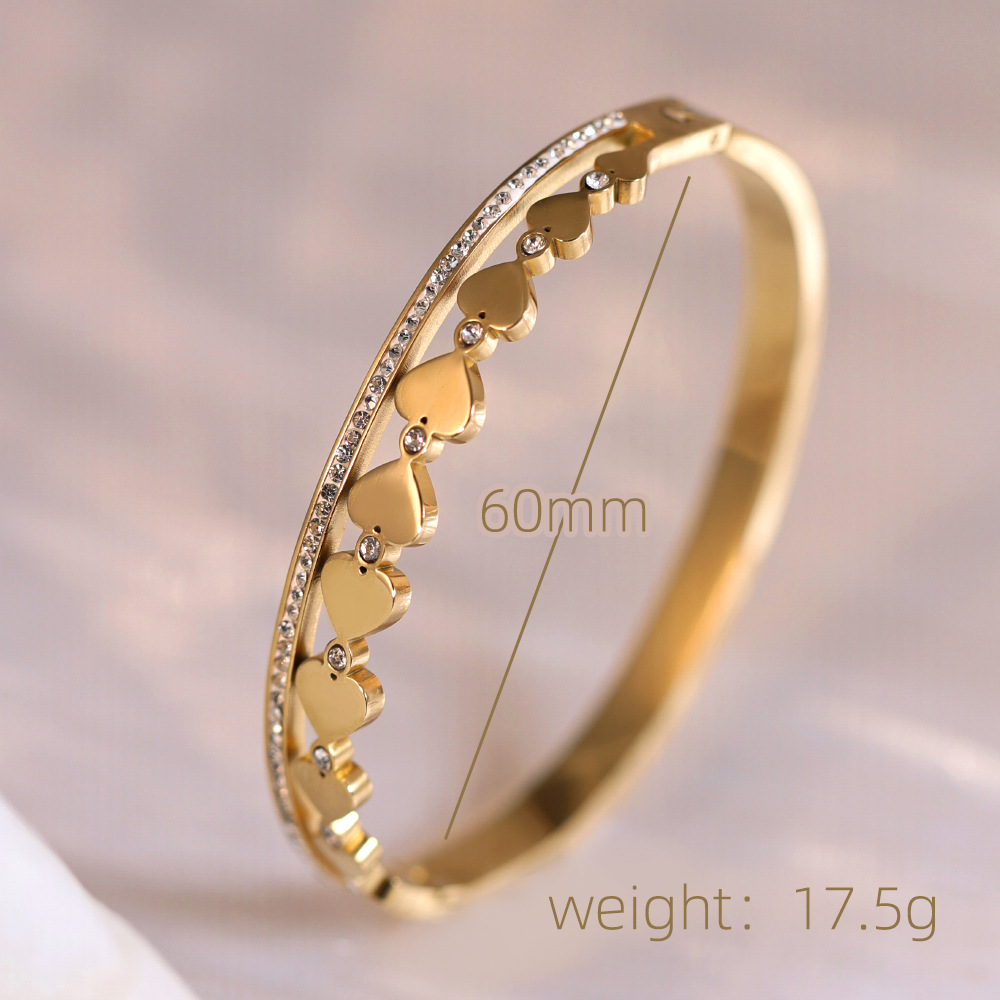 Cruach Tíotáiniam Bangle, Croí, dath an óir plated, do bhean & le rhinestone, Trastomhas Istigh:Thart 60mm, Díolta De réir PC