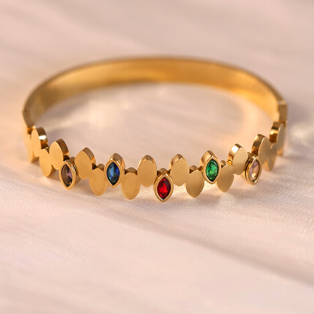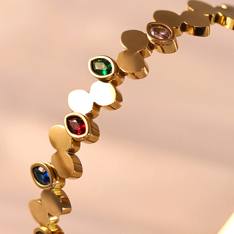 Cruach Tíotáiniam Bangle, dath an óir plated, micrea réiteach zirconia ciúbach & do bhean, Trastomhas Istigh:Thart 60mm, Díolta De réir PC