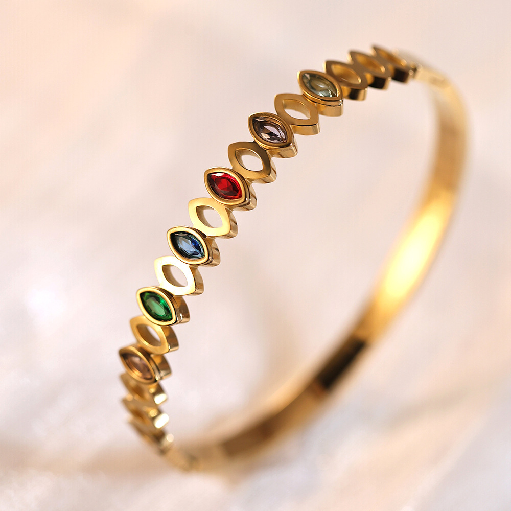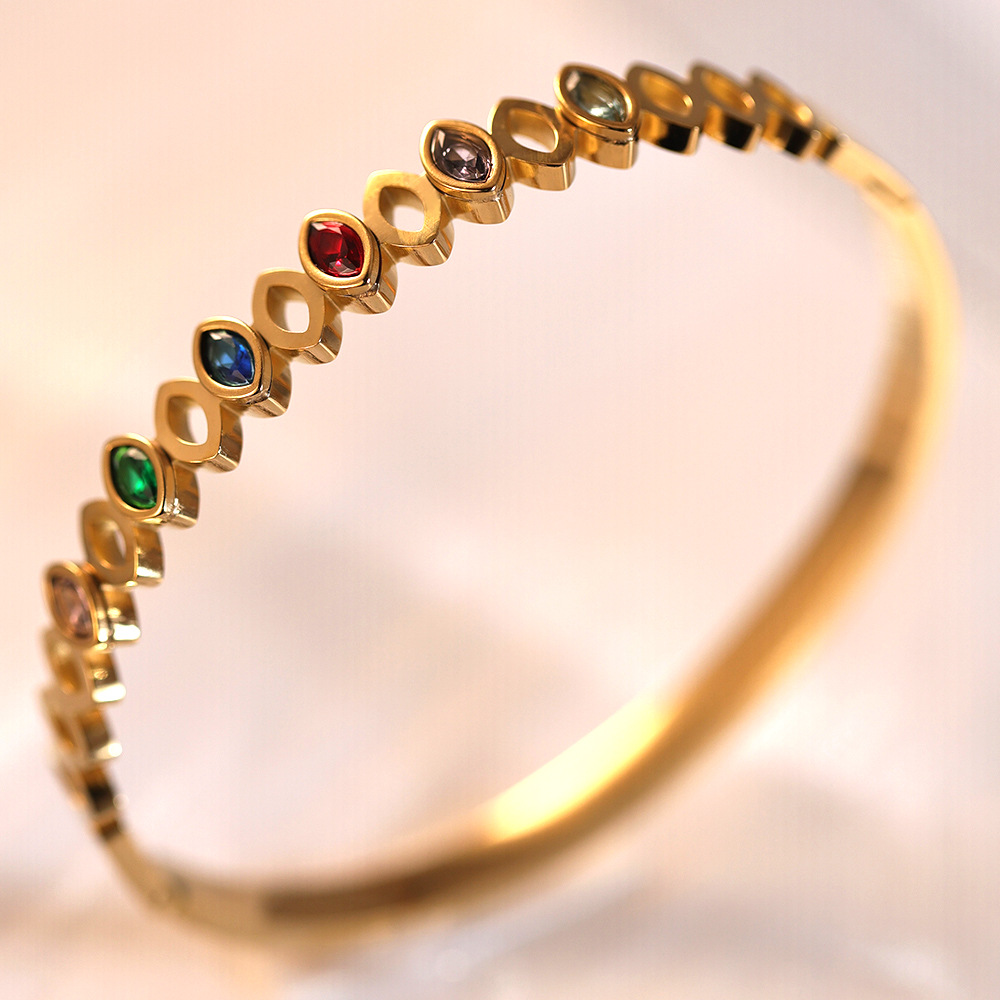 Cruach Tíotáiniam Bangle, dath an óir plated, micrea réiteach zirconia ciúbach & do bhean, Trastomhas Istigh:Thart 60mm, Díolta De réir PC