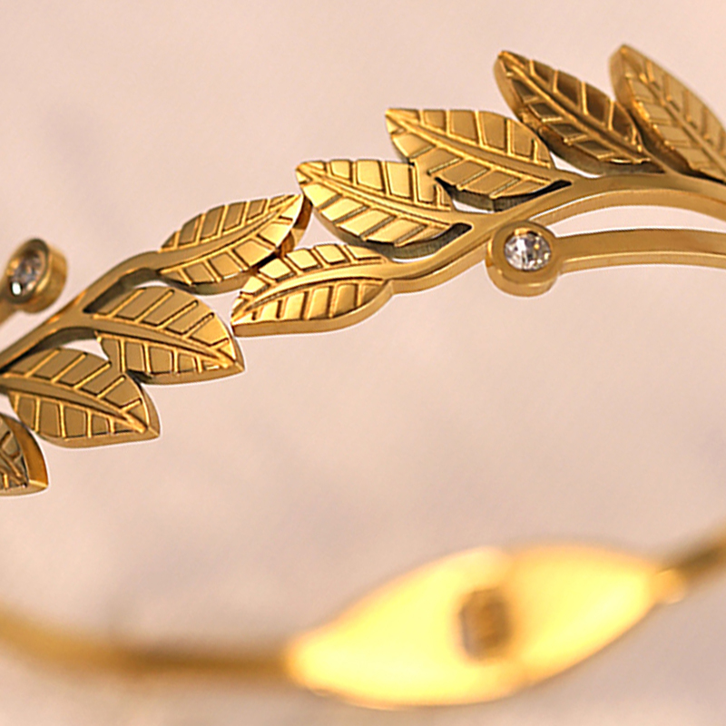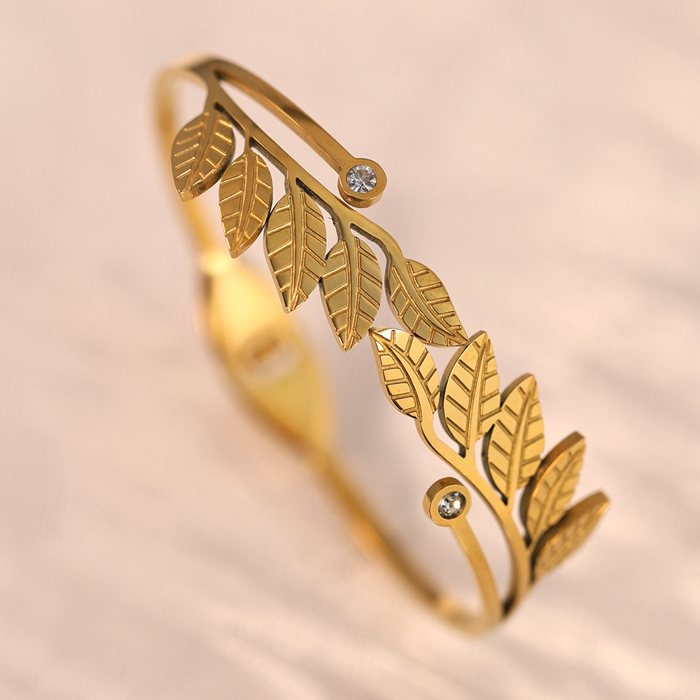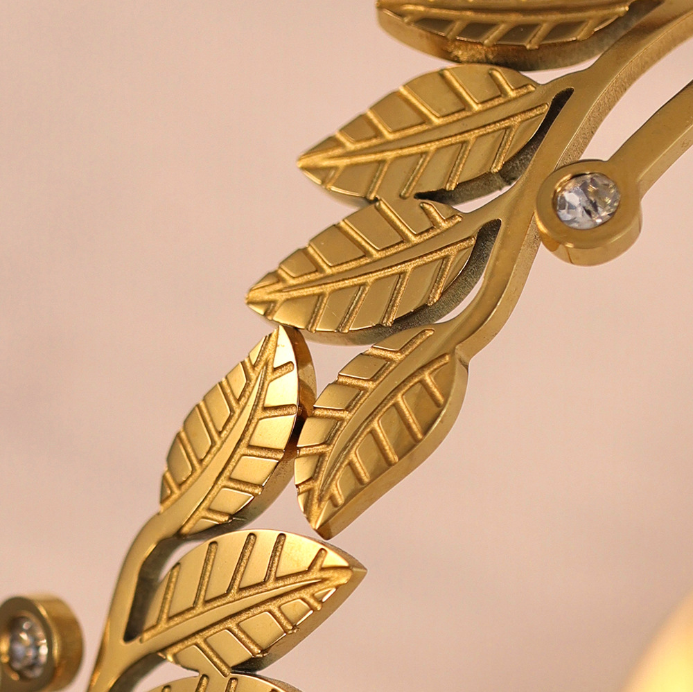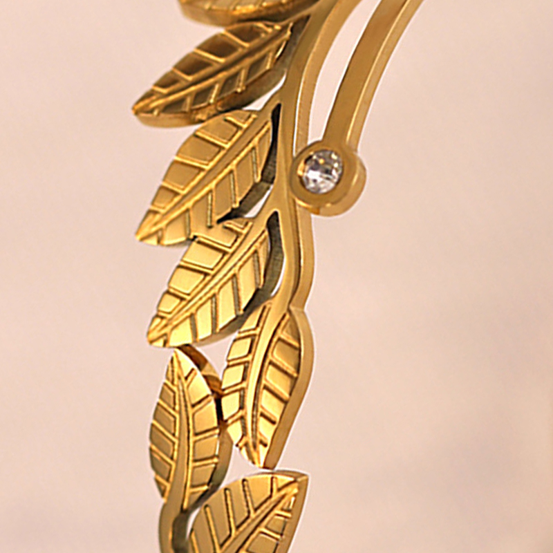 Cruach Tíotáiniam Bangle, Leaf, dath an óir plated, do bhean & le rhinestone, Trastomhas Istigh:Thart 60mm, Díolta De réir PC