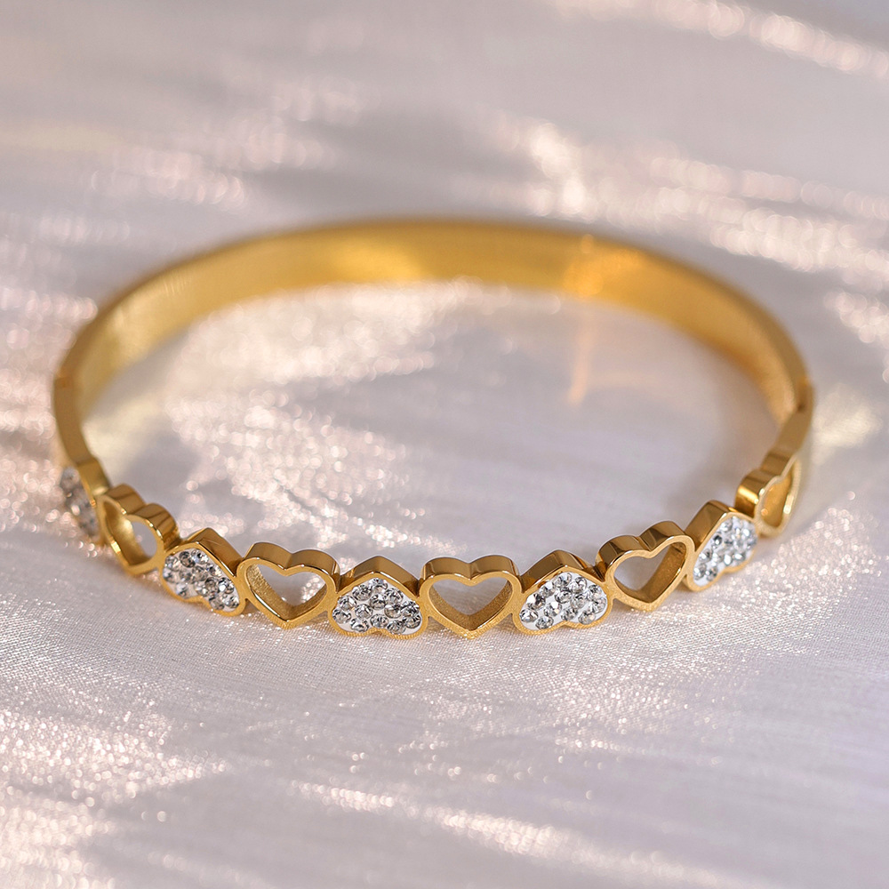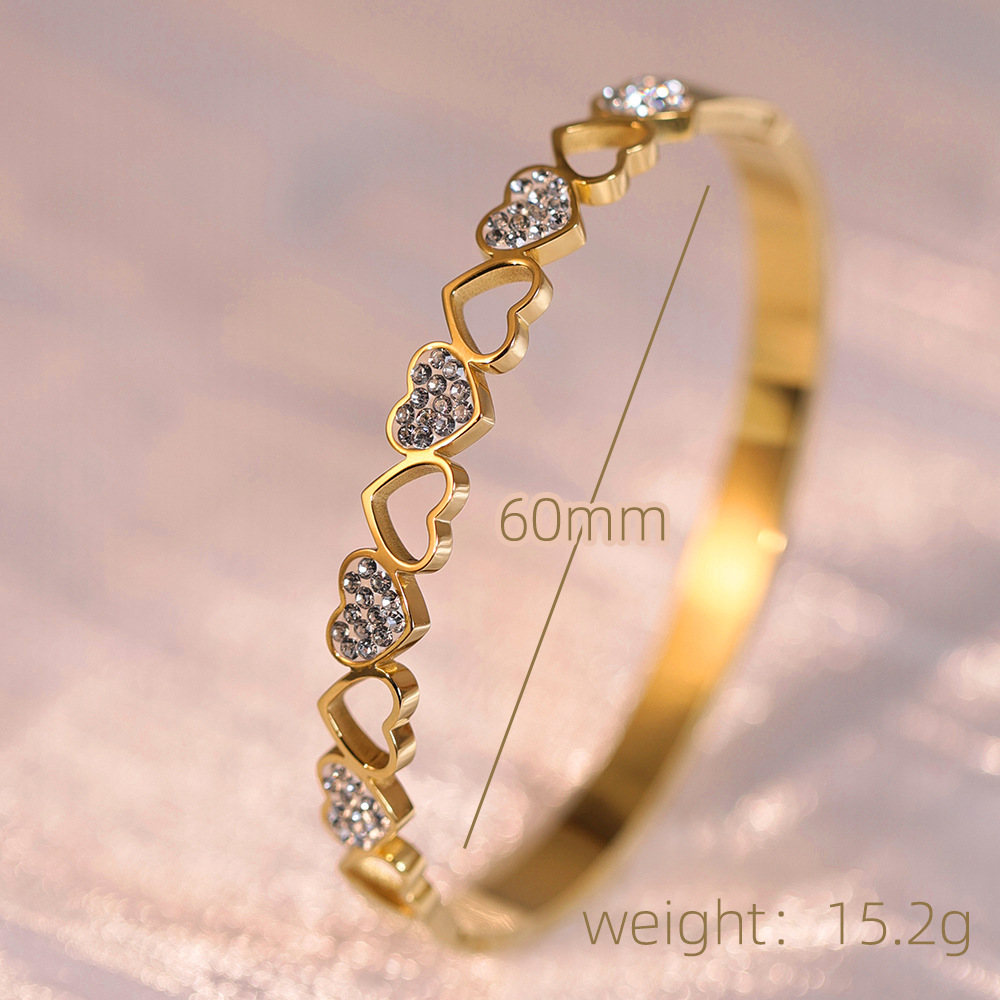 Cruach Tíotáiniam Bangle, Croí, dath an óir plated, do bhean & le rhinestone & log, Trastomhas Istigh:Thart 60mm, Díolta De réir PC