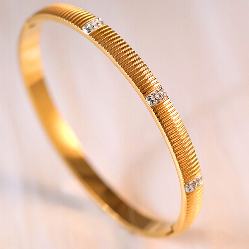 Cruach Tíotáiniam Bangle, dath an óir plated, do bhean & le rhinestone, Díolta De réir PC