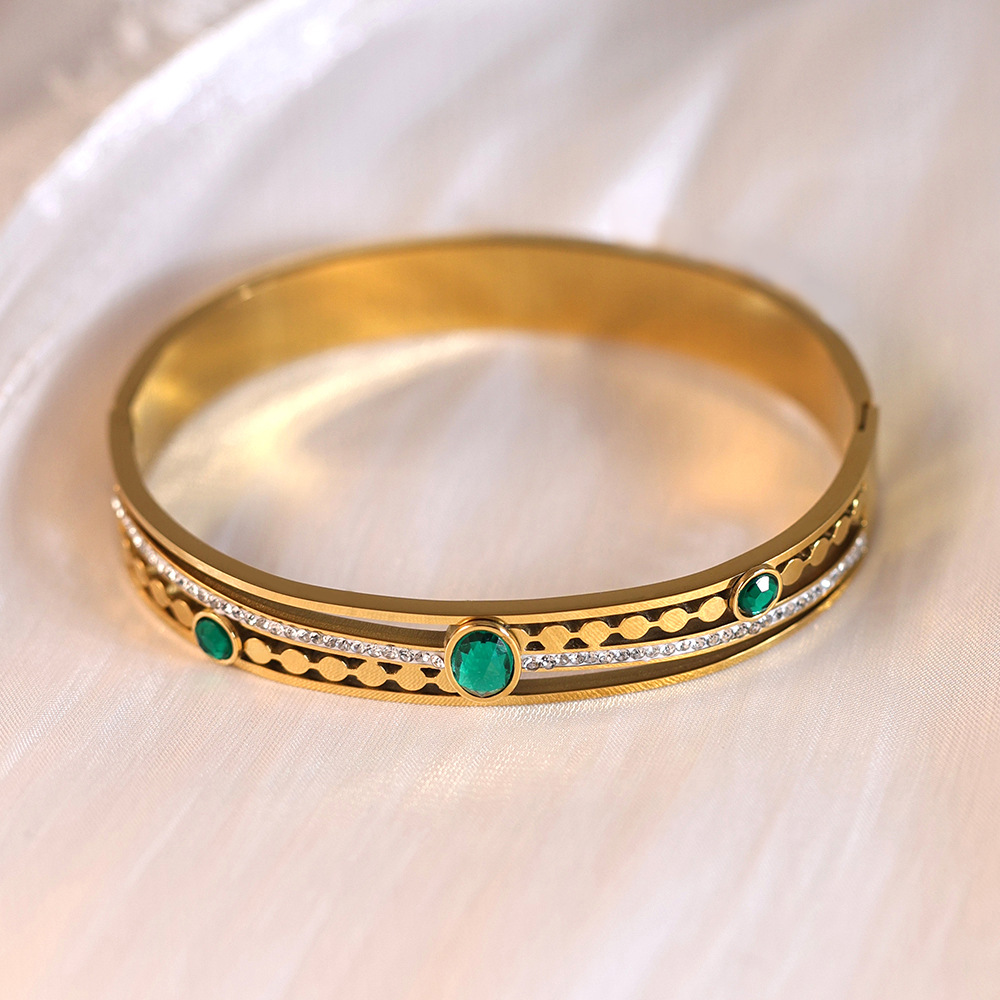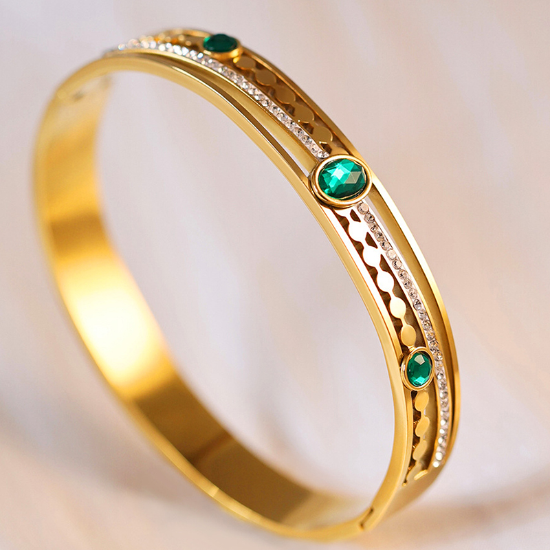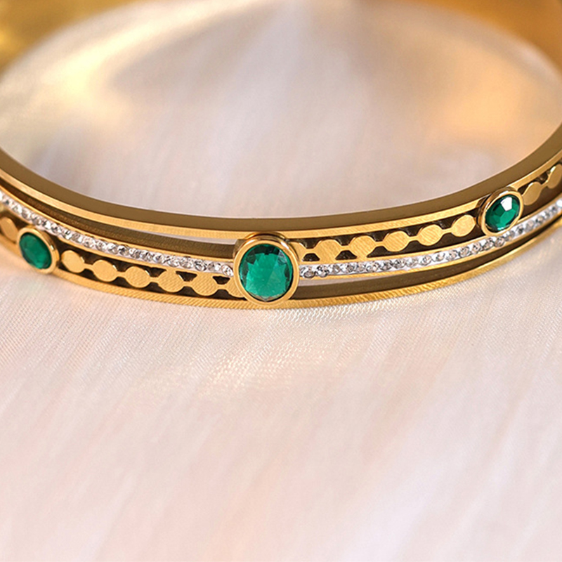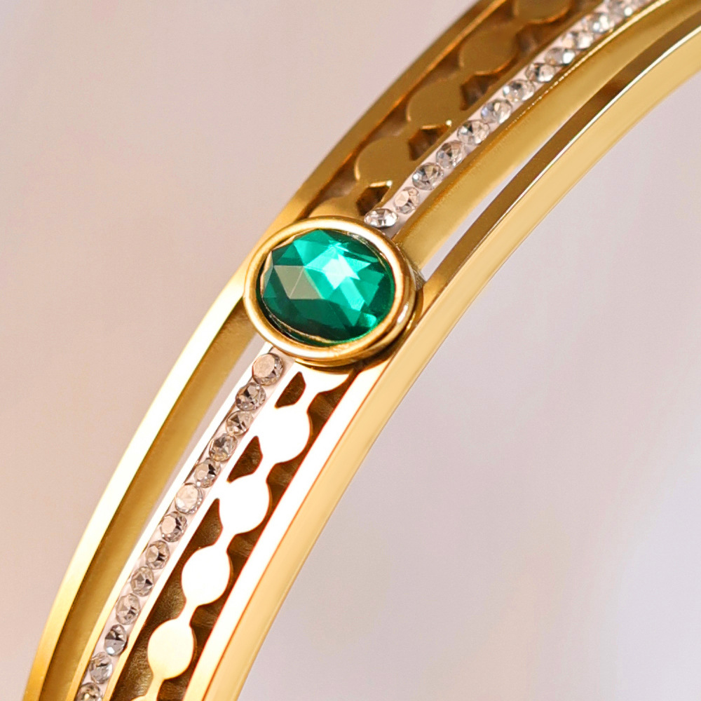 Cruach Tíotáiniam Bangle, dath an óir plated, micrea réiteach zirconia ciúbach & do bhean, Trastomhas Istigh:Thart 60mm, Díolta De réir PC
