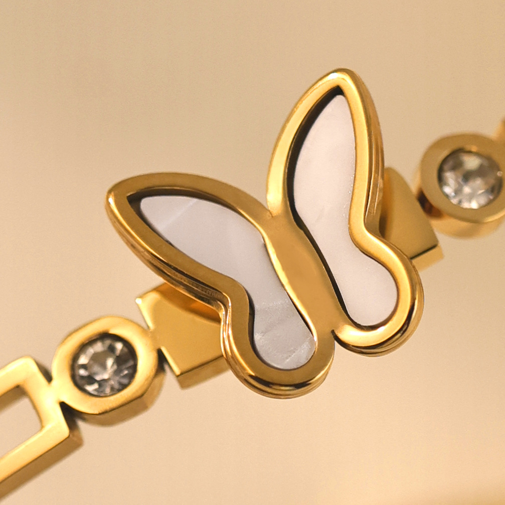 Cruach Tíotáiniam Bangle, le Bán Shell, Féileacán, do bhean & le rhinestone & log, dathanna níos mó le haghaidh rogha, Trastomhas Istigh:Thart 60mm, Díolta De réir PC