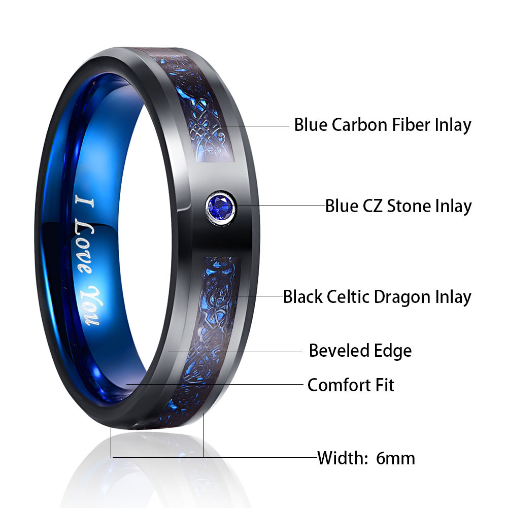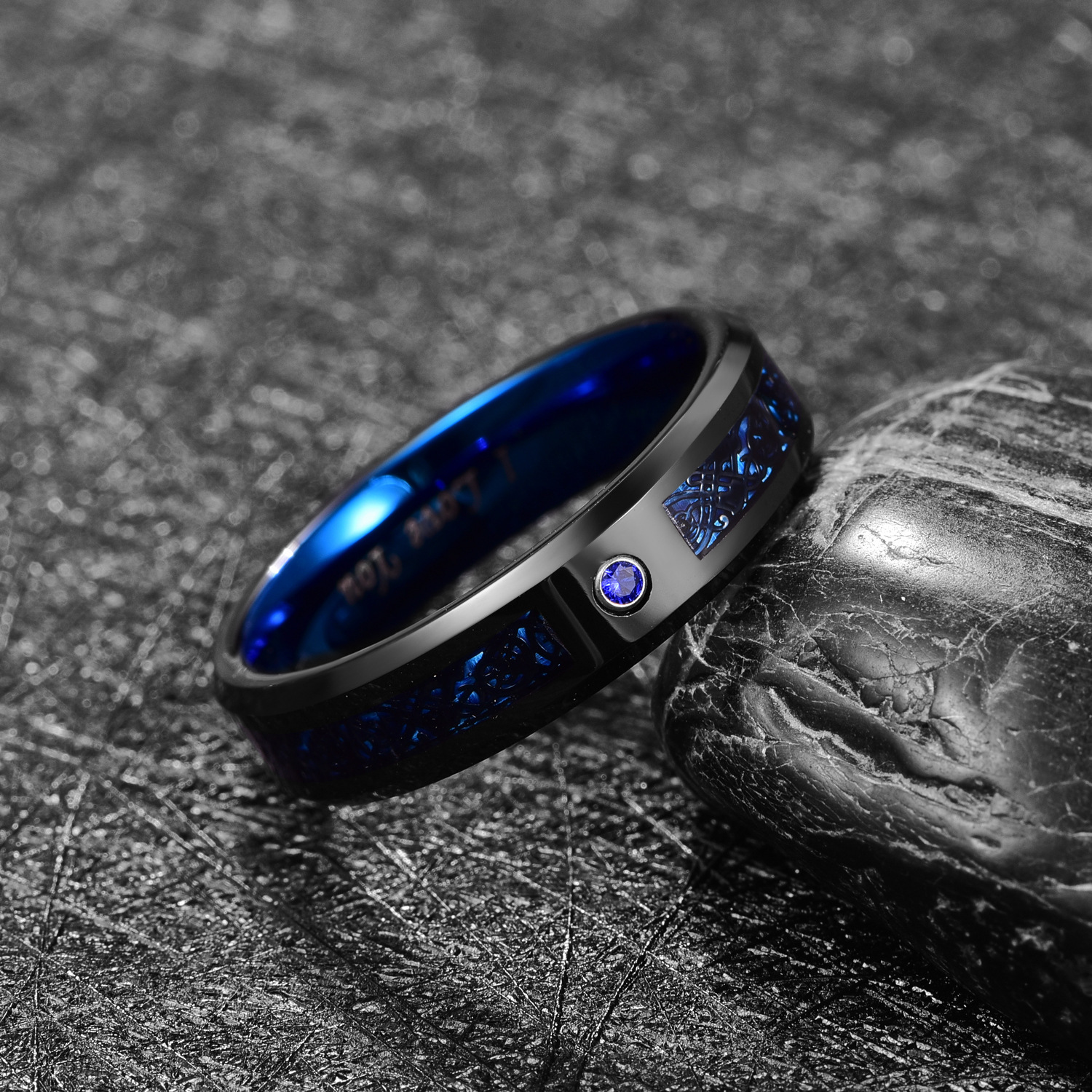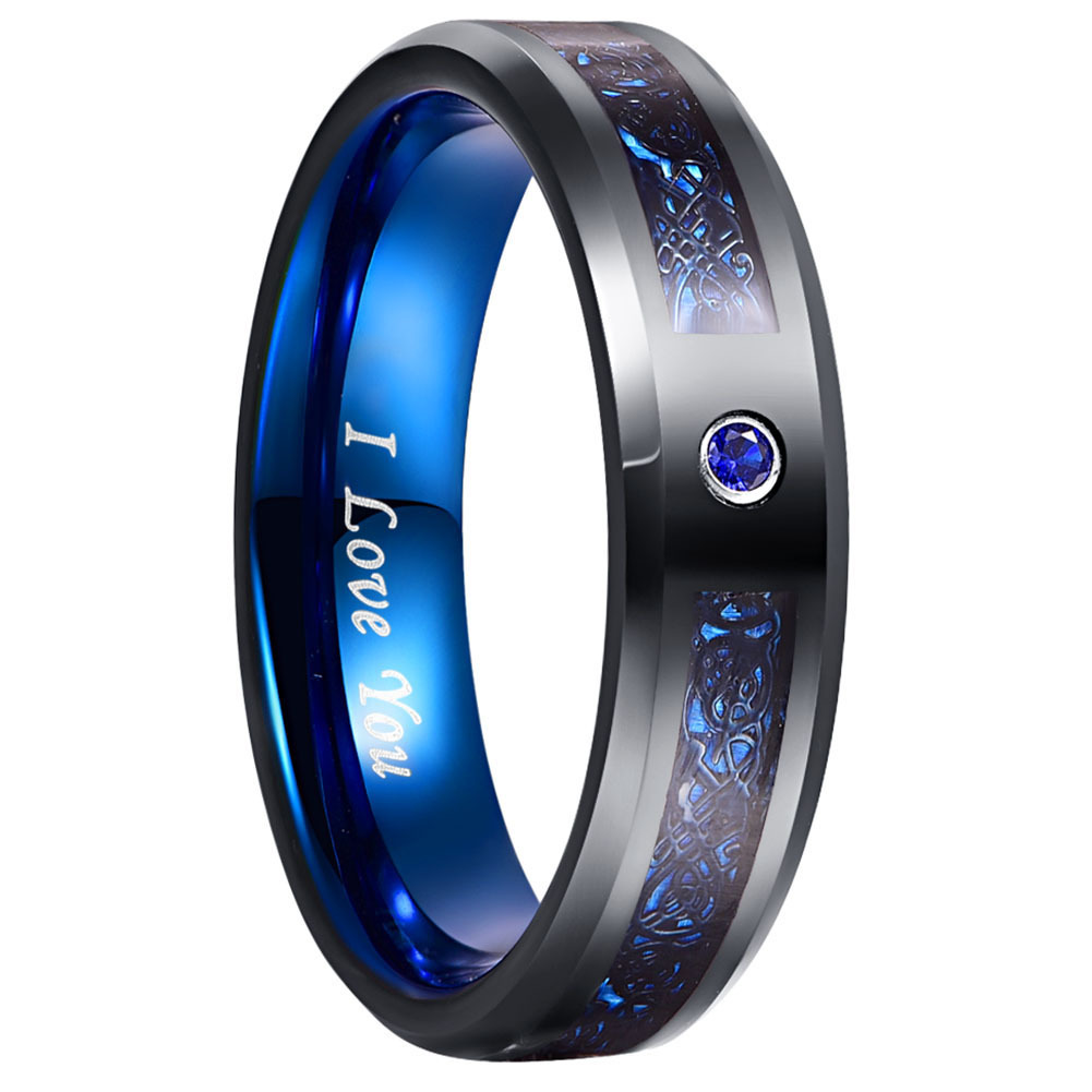 Fáinne Cruach Tungstain do Fhir, tungstain Cruach, le Ciúbach Zirconia, plátáilte, jewelry faisin & méid éagsúla do rogha & do fear, gorm, Díolta De réir PC