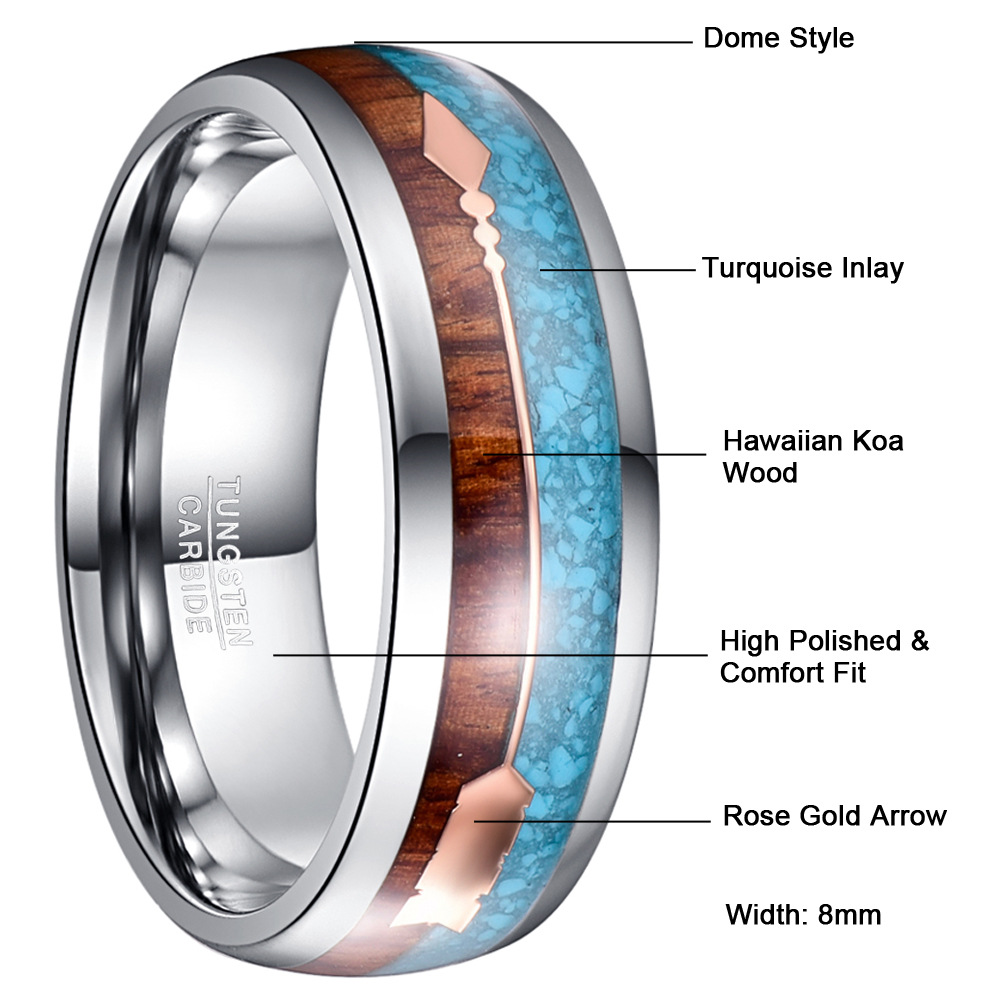 Fáinne Cruach Tungstain do Fhir, tungstain Cruach, le turquoise & Adhmad, snasta, jewelry faisin & méid éagsúla do rogha & do fear, dath bunaidh, Díolta De réir PC