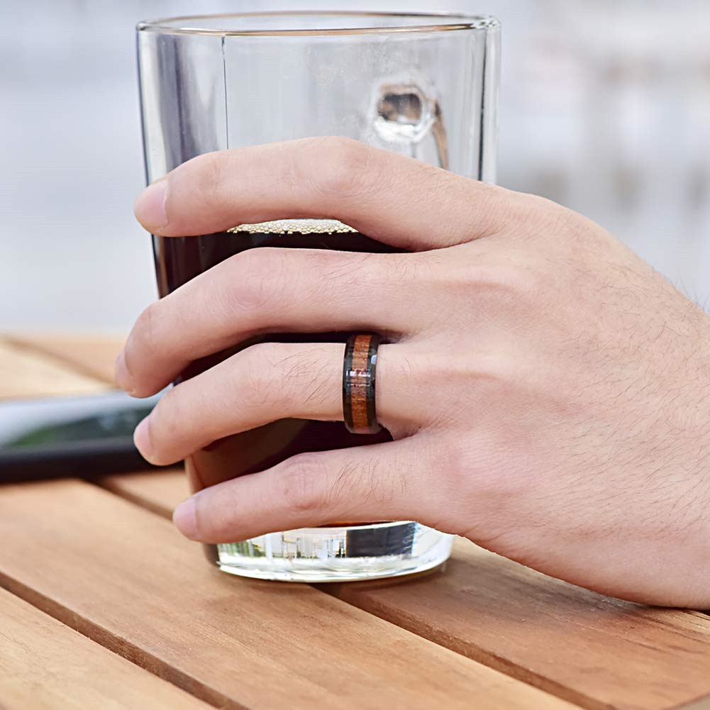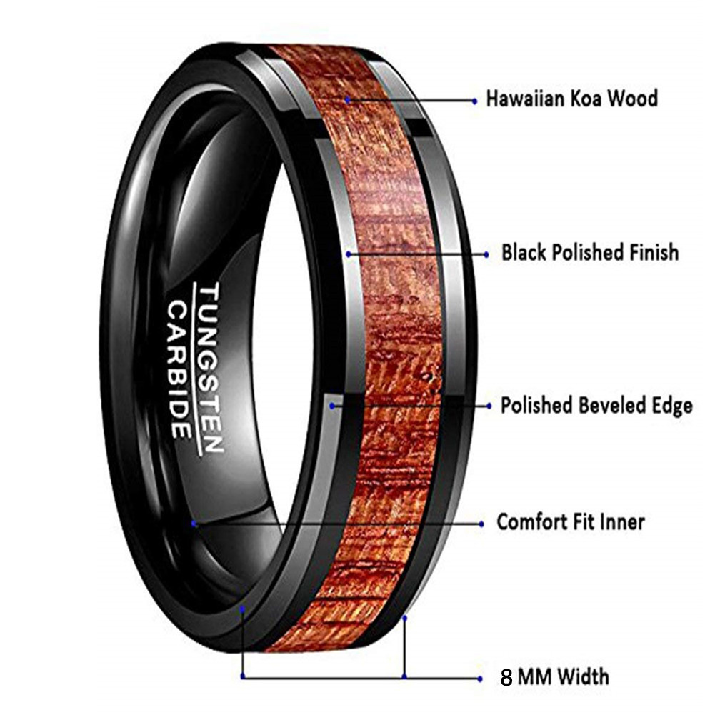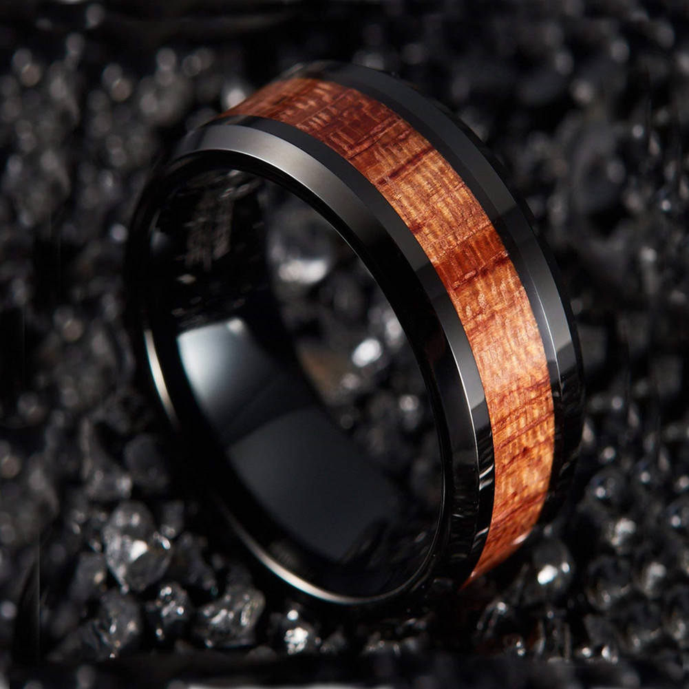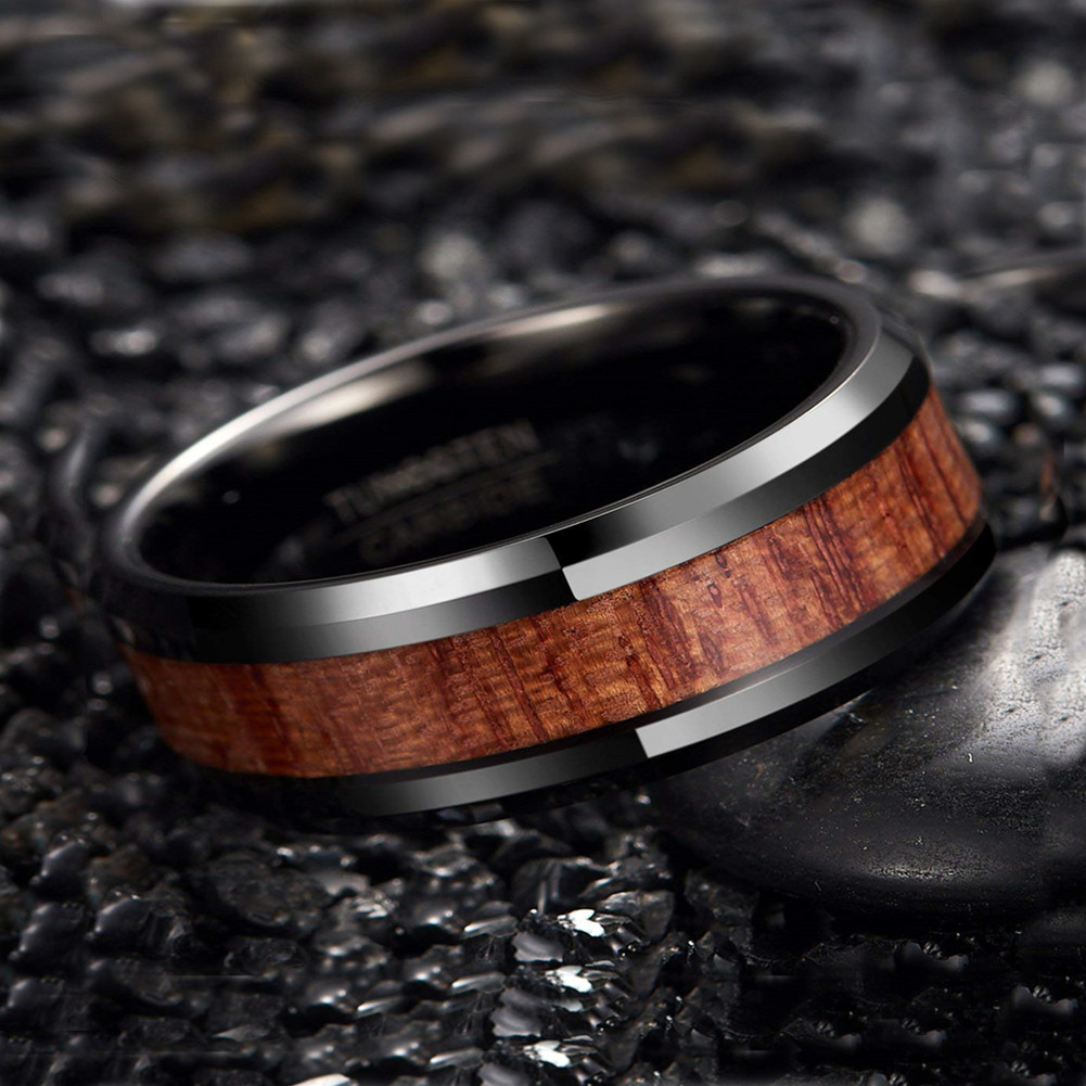 Fáinne Cruach Tungstain do Fhir, tungstain Cruach, le Adhmad, plátáilte, jewelry faisin & méid éagsúla do rogha & do fear, dubh, Díolta De réir PC