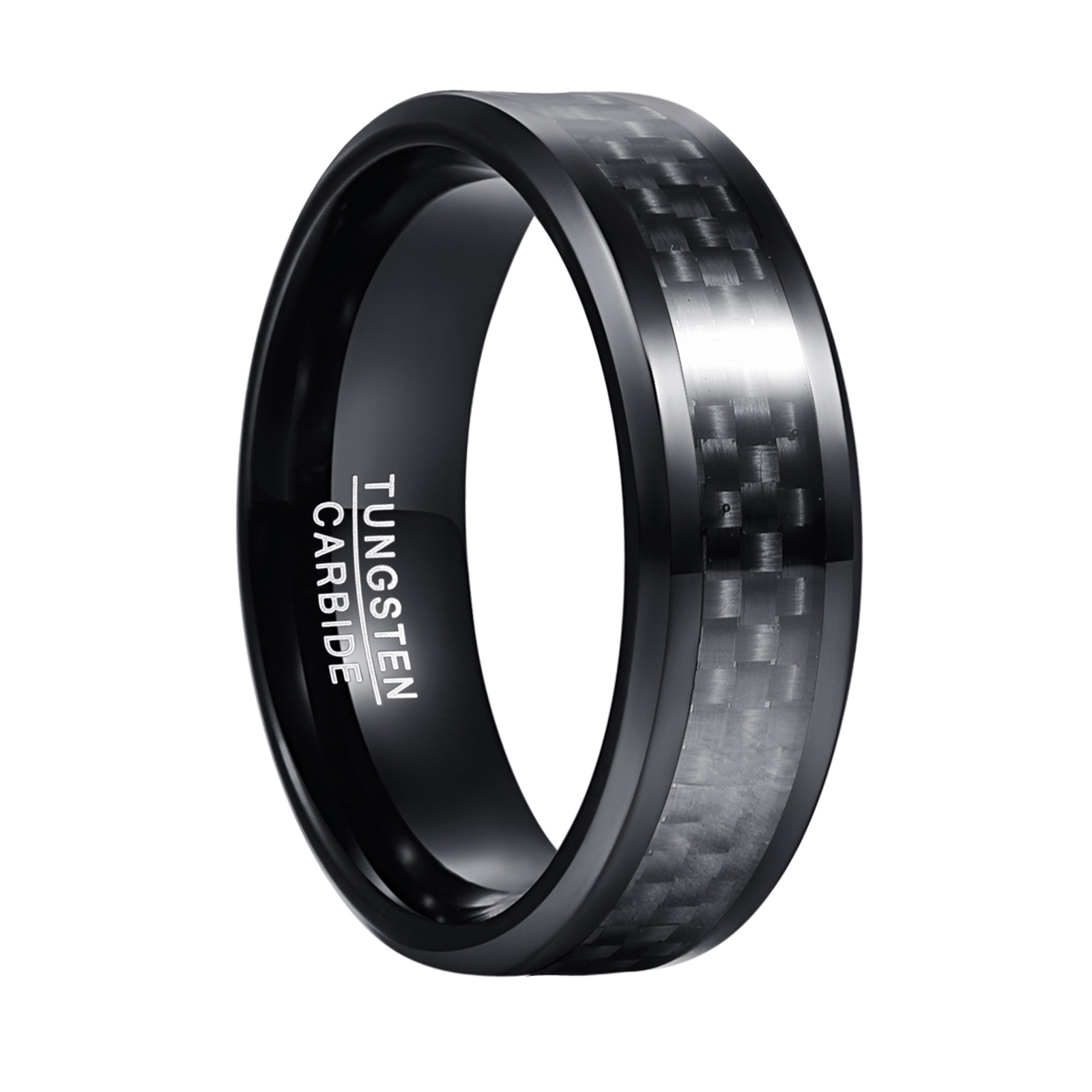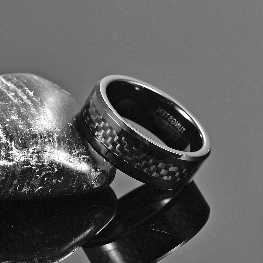 Fáinne Cruach Tungstain do Fhir, tungstain Cruach, le Fiber Carbóin, plátáilte, jewelry faisin & méid éagsúla do rogha & do fear, dubh, wide:8mm, Díolta De réir PC