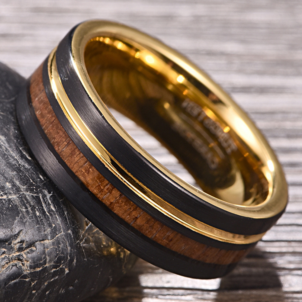 Fáinne Cruach Tungstain do Fhir, tungstain Cruach, le Adhmad, plátáilte, méid éagsúla do rogha & do fear & dhá ton, Díolta De réir PC