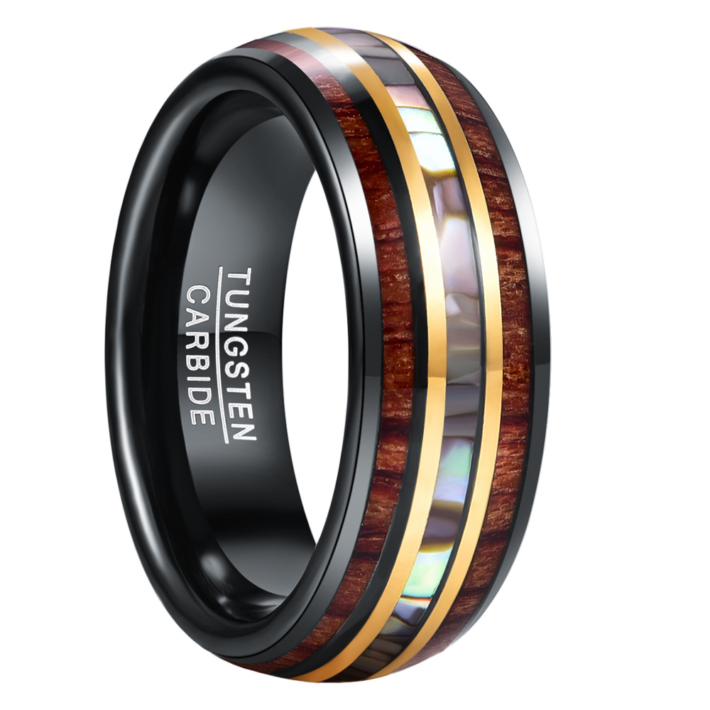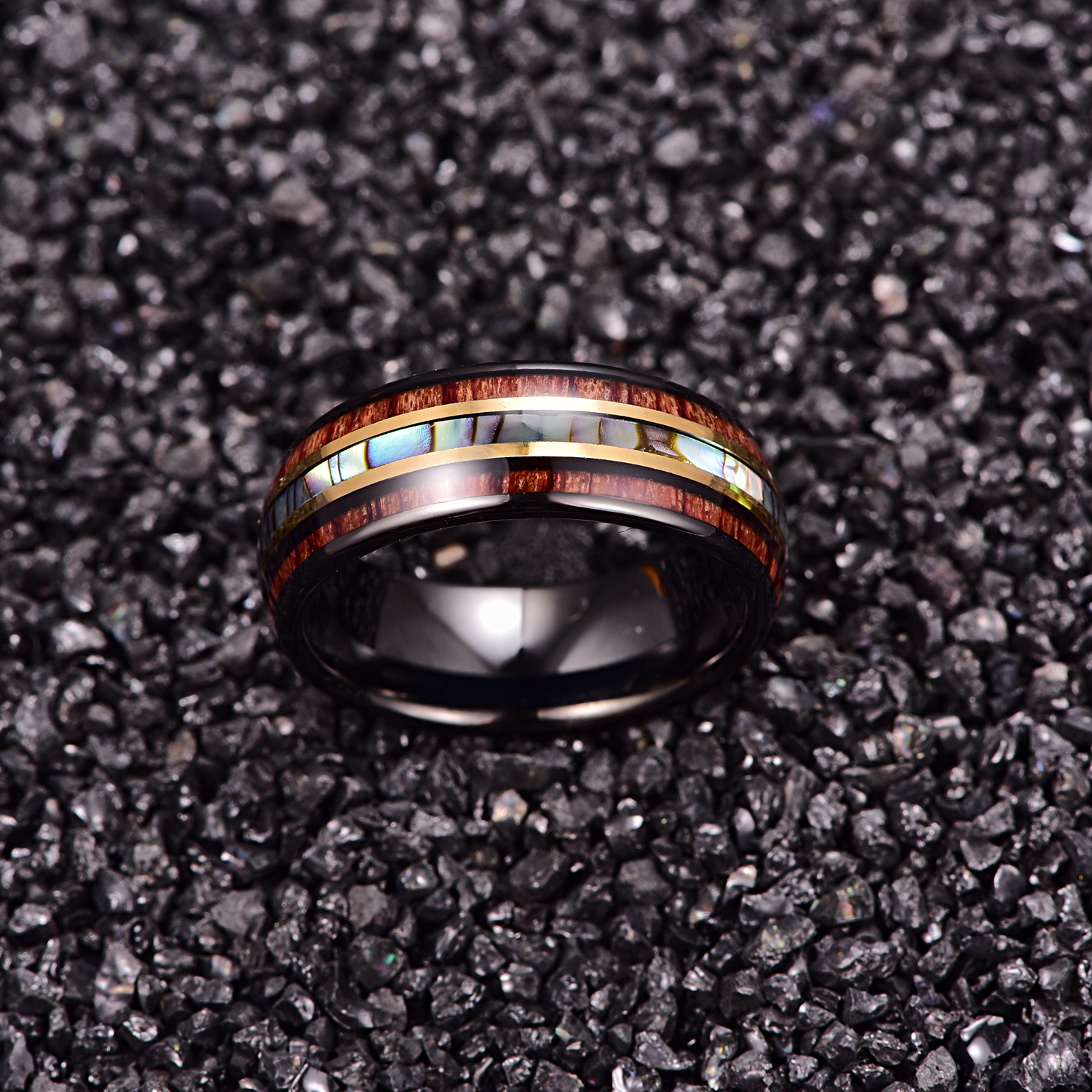 Fáinne Cruach Tungstain do Fhir, tungstain Cruach, le Opal & Adhmad, plátáilte, jewelry faisin & méid éagsúla do rogha & do fear, dubh, wide:8mm, Díolta De réir PC