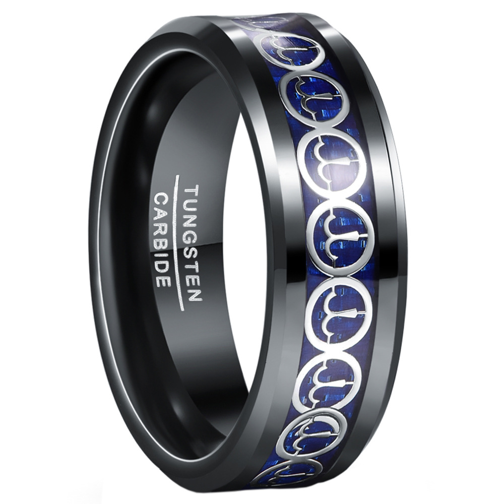 Fáinne Cruach Tungstain do Fhir, tungstain Cruach, le Fiber Carbóin, plátáilte, jewelry faisin & méid éagsúla do rogha & do fear, dubh, wide:8mm, Díolta De réir PC