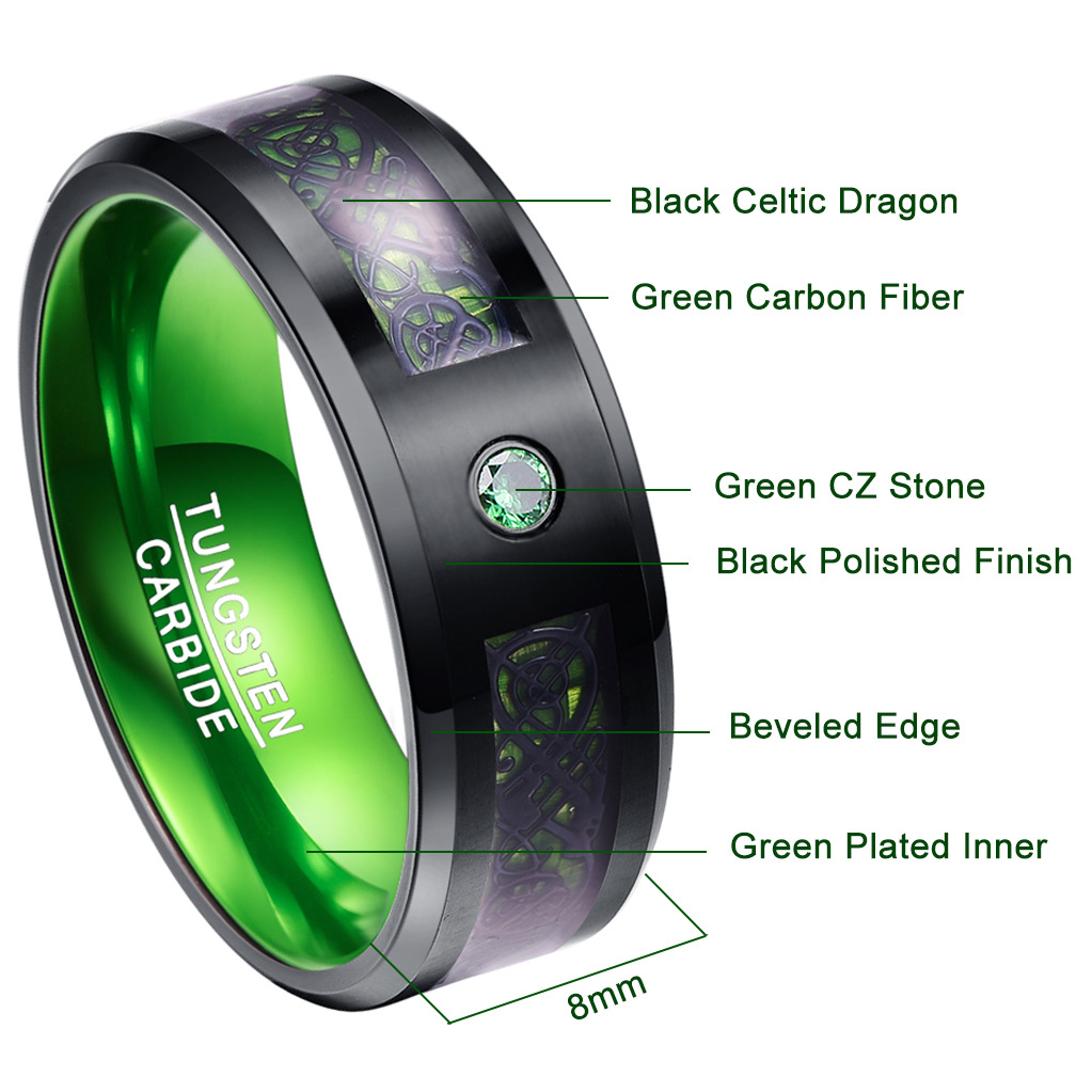 Fáinne Cruach Tungstain do Fhir, tungstain Cruach, plátáilte, méid éagsúla do rogha & micrea réiteach zirconia ciúbach & do fear, dubh, Díolta De réir PC