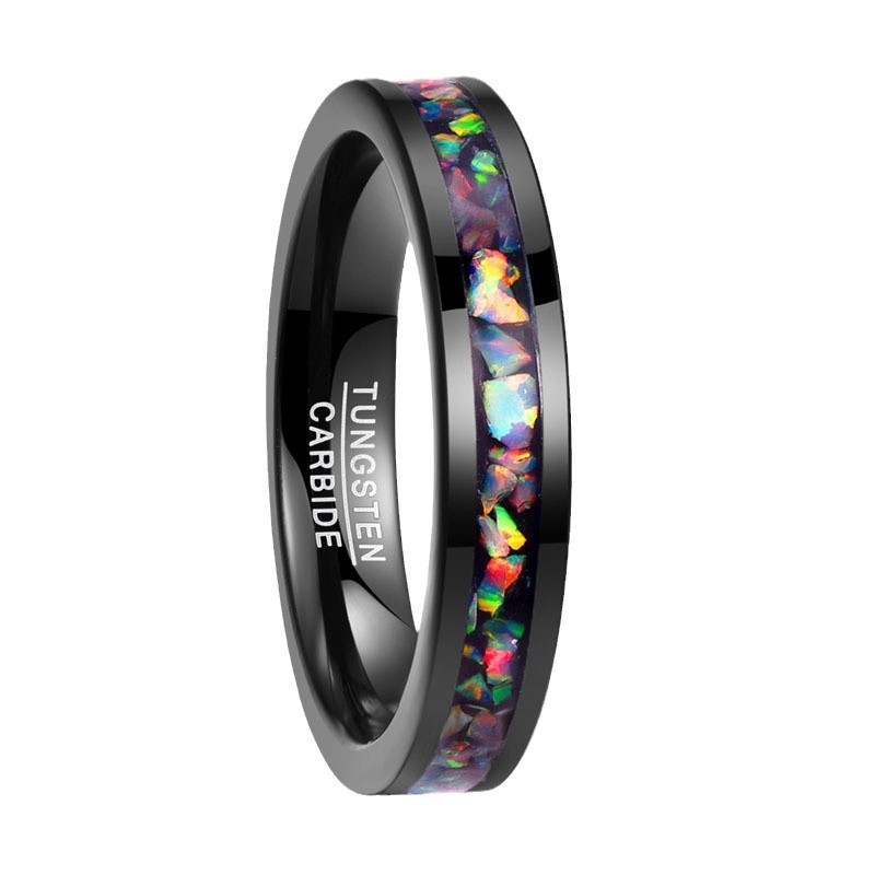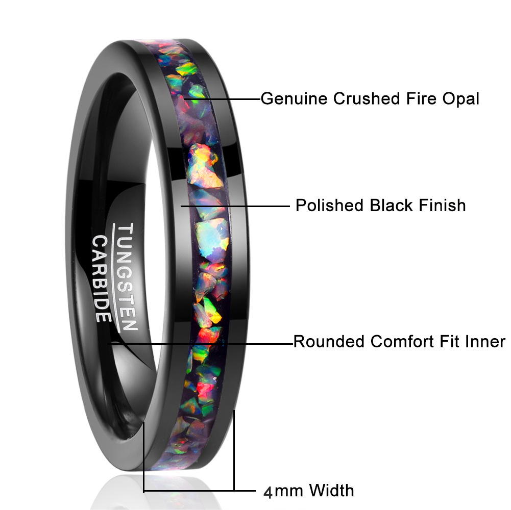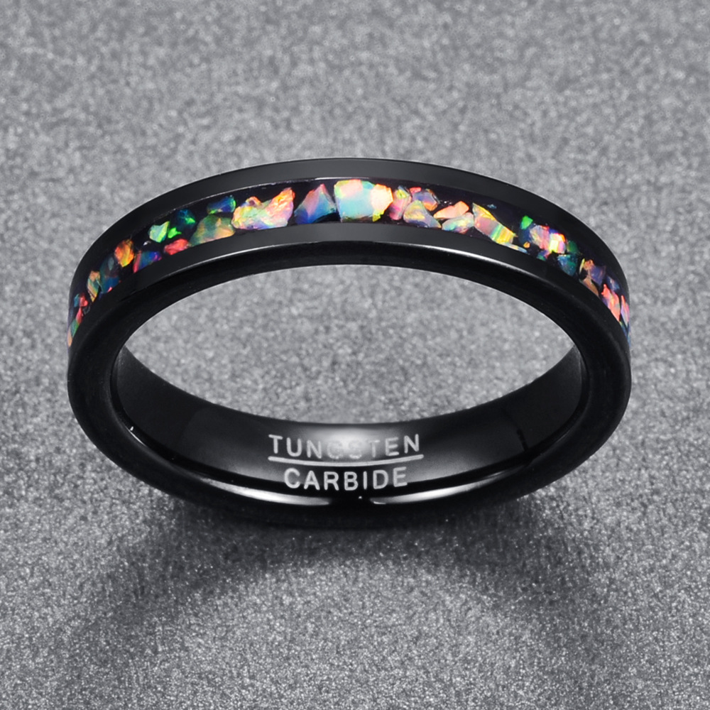 Fáinne Cruach Tungstain do Fhir, tungstain Cruach, le Opal, plátáilte, jewelry faisin & méid éagsúla do rogha & do bhean, dubh, Díolta De réir PC