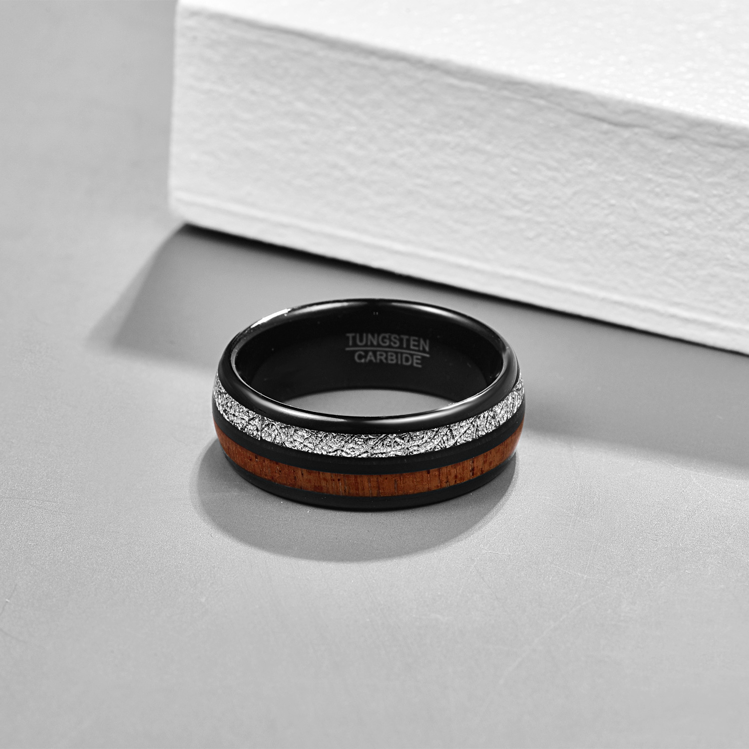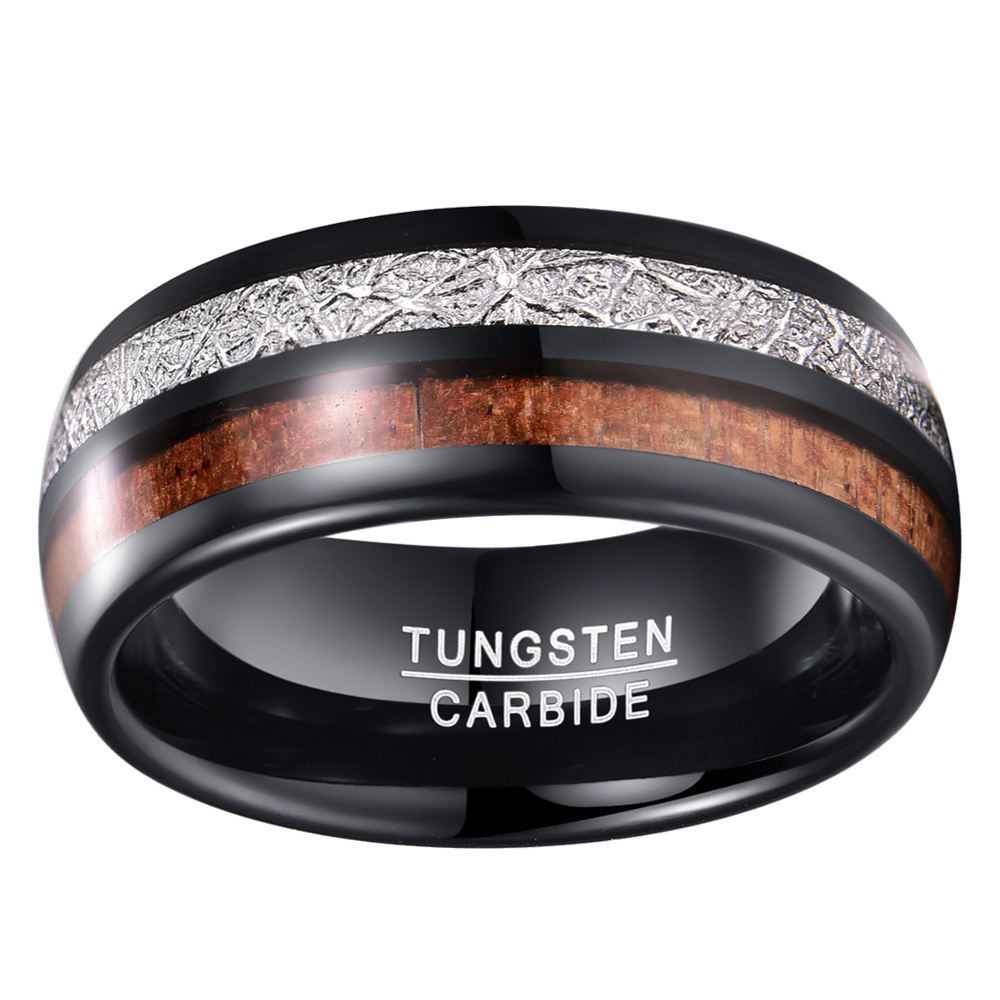 Fáinne Cruach Tungstain do Fhir, tungstain Cruach, le Fiber Carbóin & Adhmad, plátáilte, jewelry faisin & unisex & méid éagsúla do rogha, dubh, wide:8mm, Díolta De réir PC