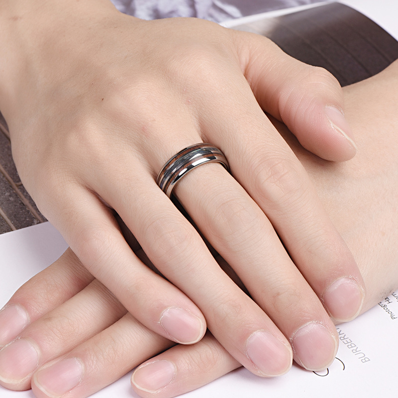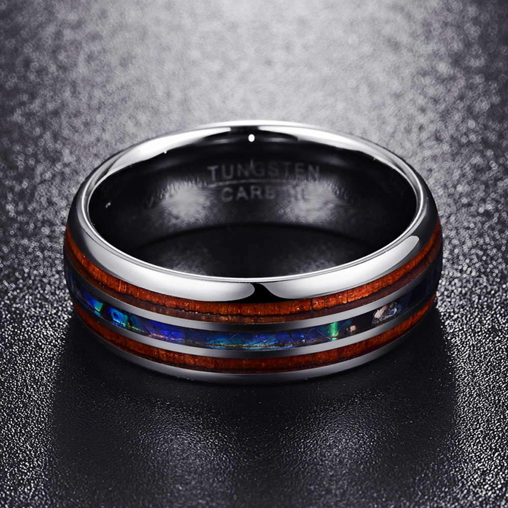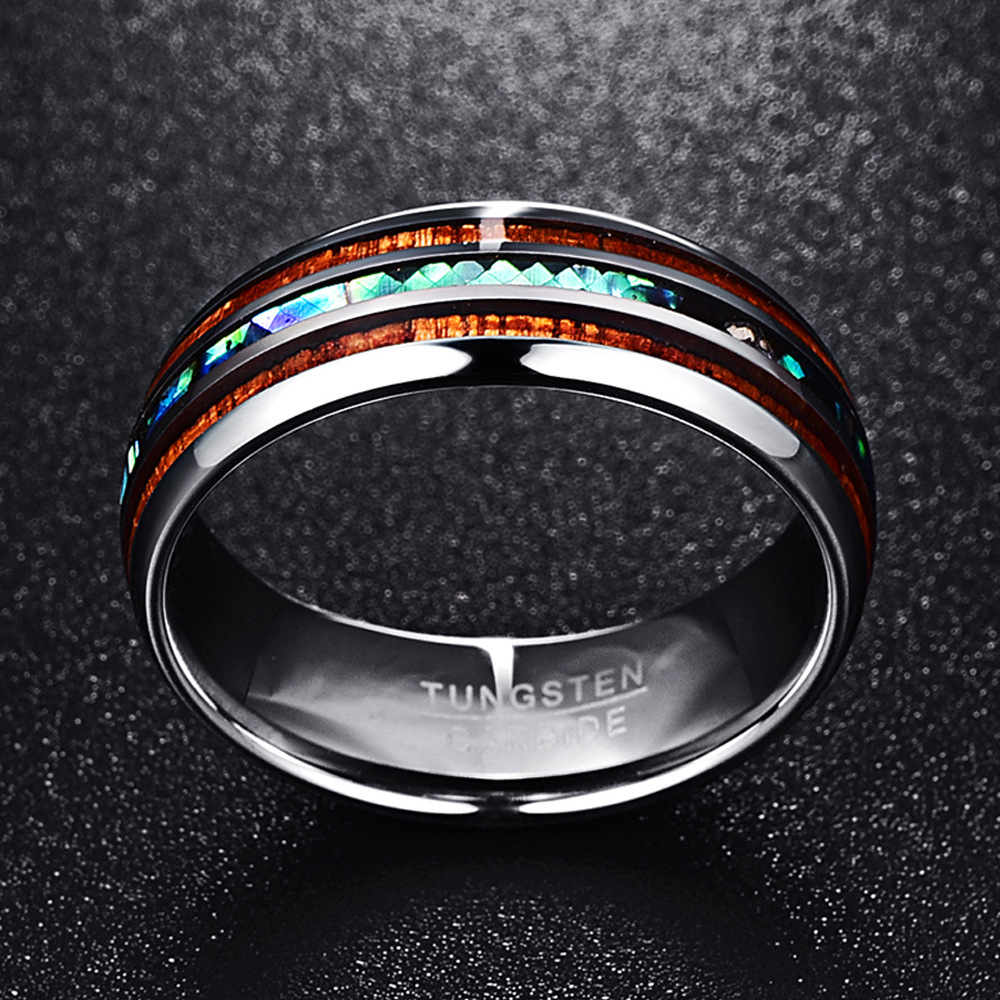 Fáinne Cruach Tungstain do Fhir, tungstain Cruach, le Chluas mhara Shell & Adhmad, plátáilte, jewelry faisin & méid éagsúla do rogha & do fear, dath bunaidh, Díolta De réir PC