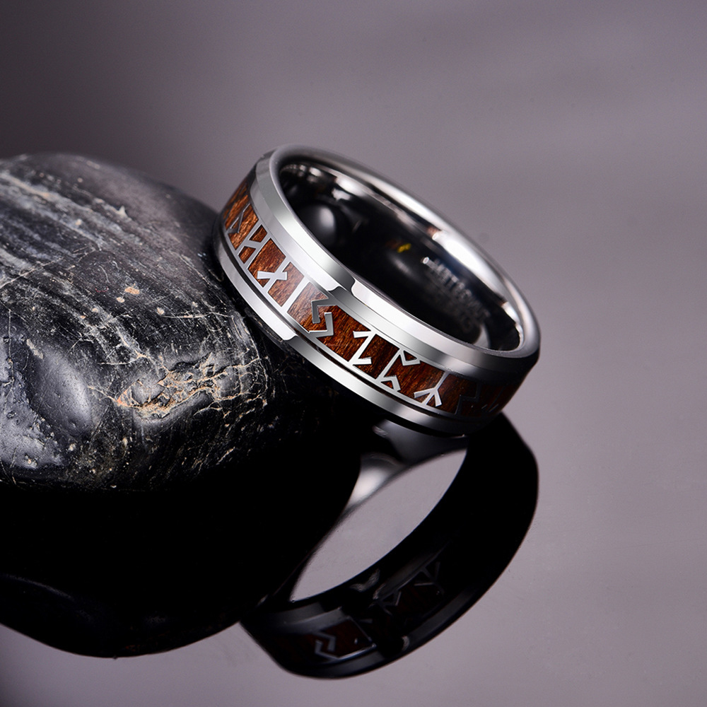 Fáinne Cruach Tungstain do Fhir, tungstain Cruach, le Adhmad, plátáilte, jewelry faisin & méid éagsúla do rogha & do fear, dath bunaidh, wide:8mm, Díolta De réir PC