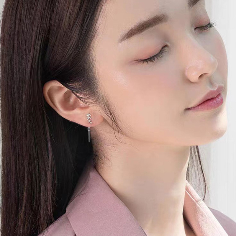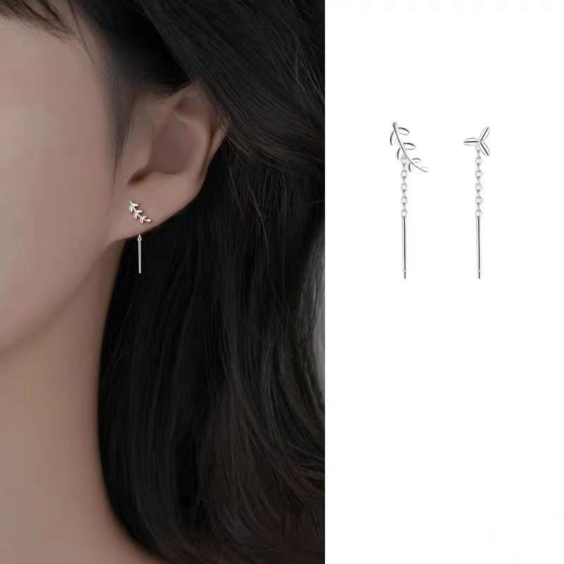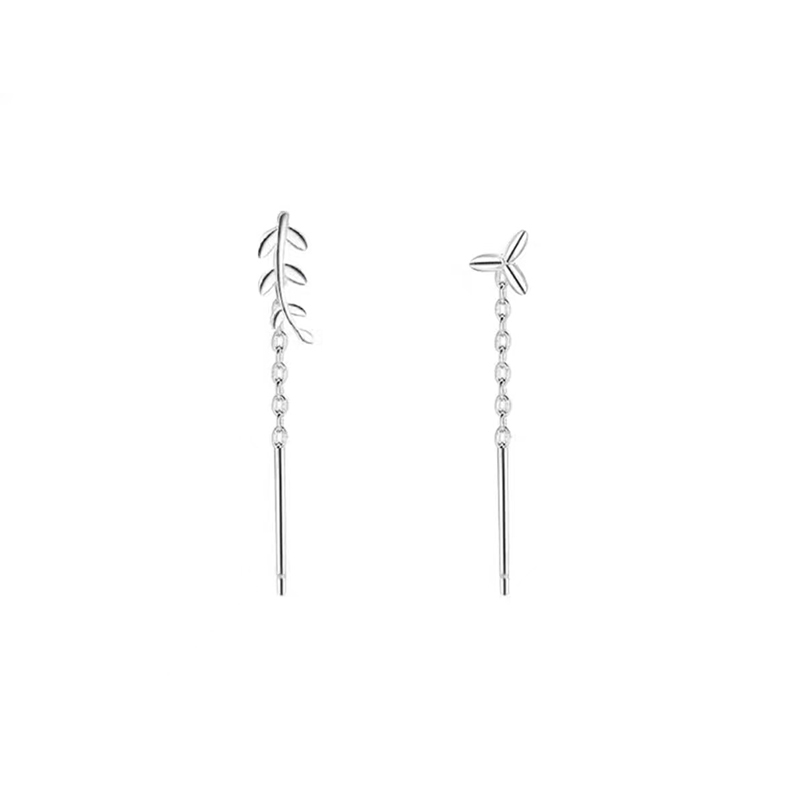 925 Sterling Silver Snáithe Neamhshiméadrach trí Chluasáin, Leaf, jewelry faisin & do bhean, airgid, 25mm, Díolta De réir Péire