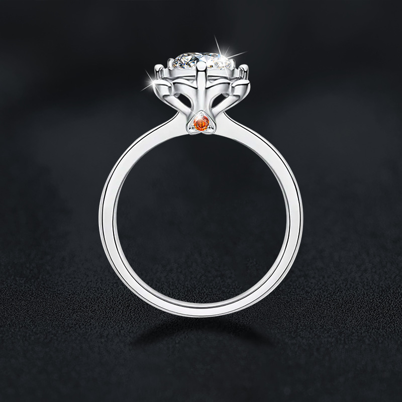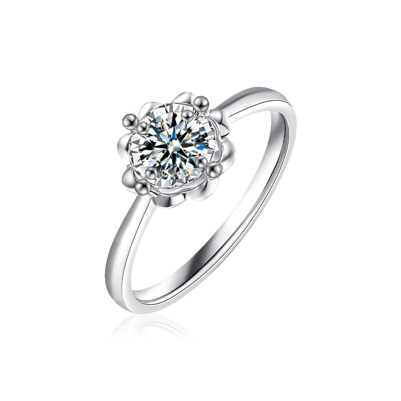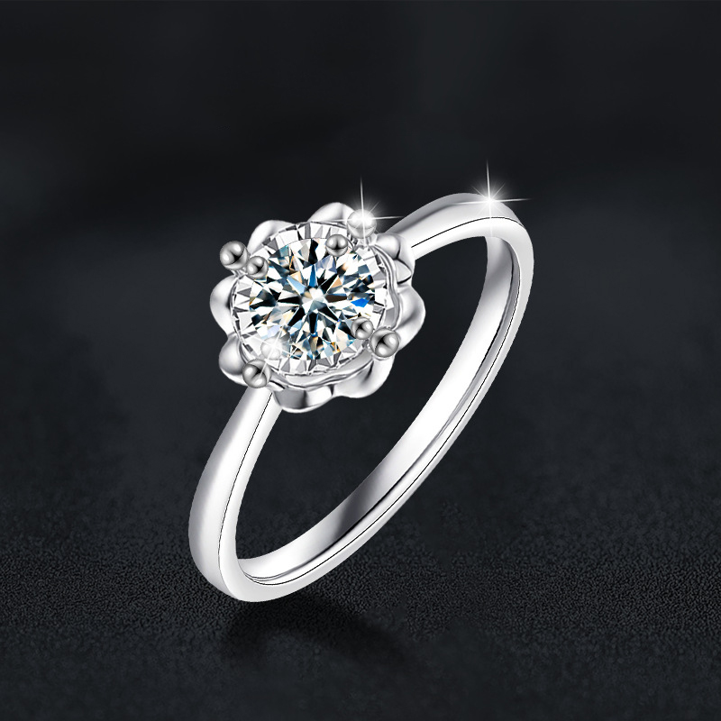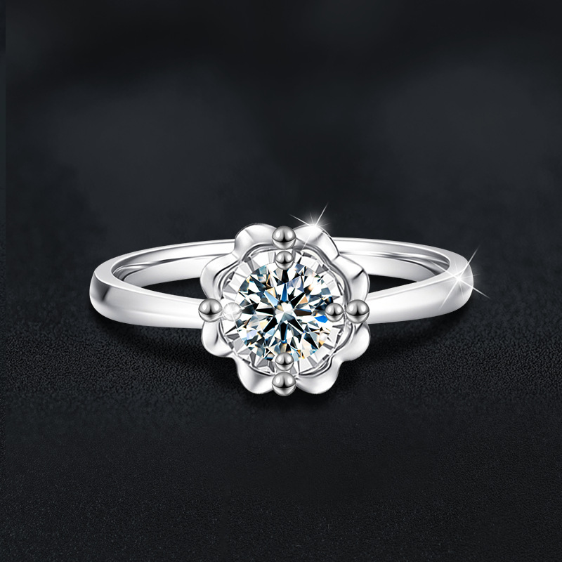 925 Sterling Silver Ring Finger, le MoissaniteCity name (optional, but should be translated), Flower, platanam plátáilte, méid éagsúla do rogha & do bhean, Méid:5-8, Díolta De réir PC