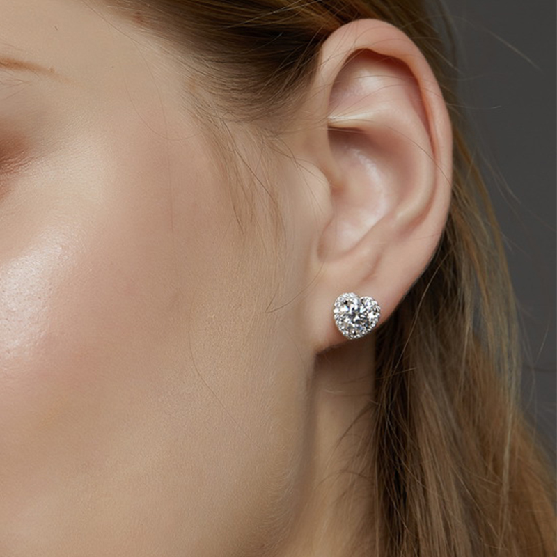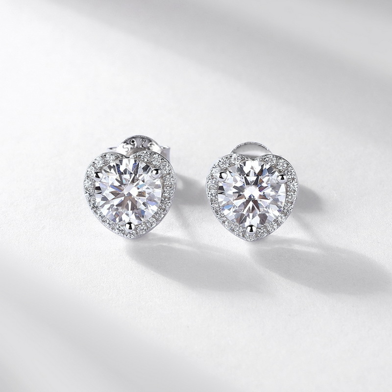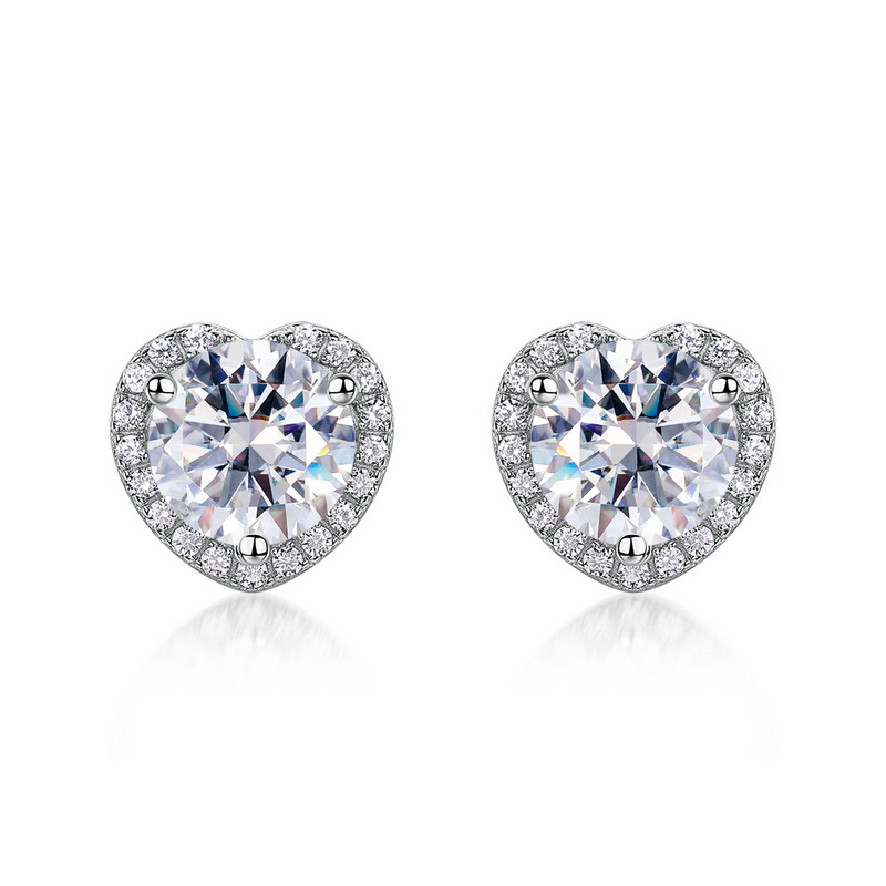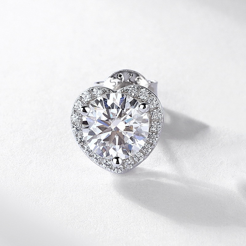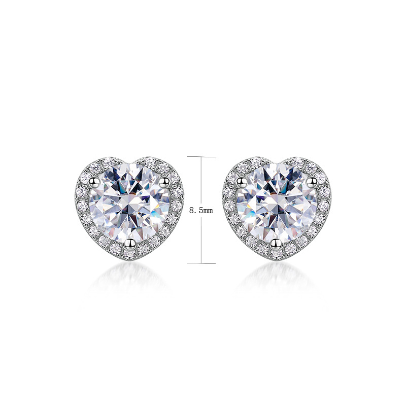 925 Sterling Silver Graí Earring, le MoissaniteCity name (optional, but should be translated), Croí, platanam plátáilte, do bhean & le rhinestone, 8.50mm, Díolta De réir Péire