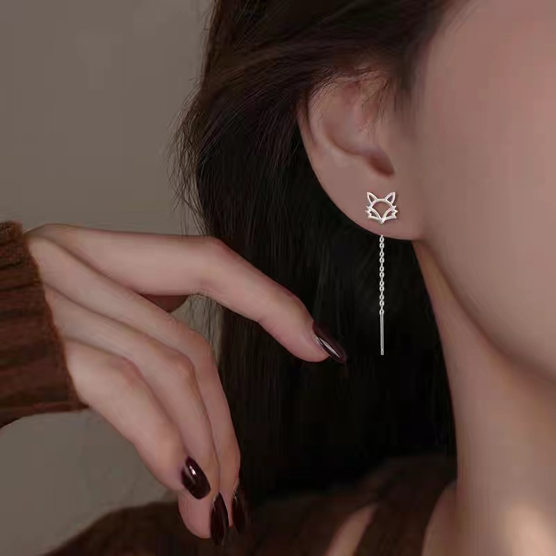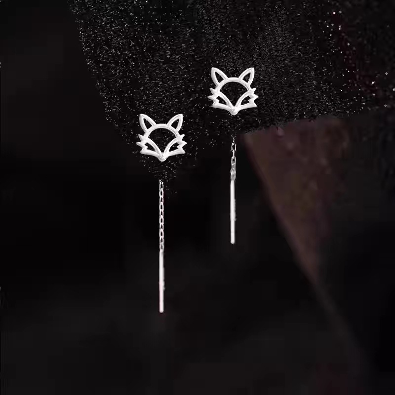 925 Sterling Silver Snáithe Trí Earrings, Fox, platanam plátáilte, méid éagsúla do rogha & do bhean & log, Díolta De réir Péire