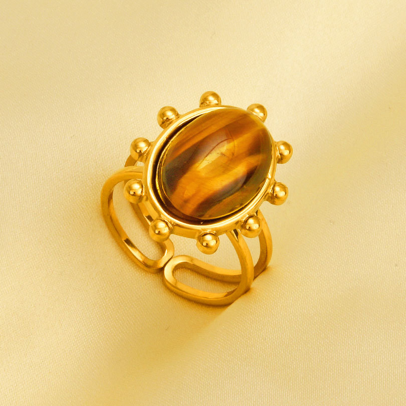 Gemstone Finger Ring, 304 Cruach dhosmálta, le Gemstone, dath an óir plated, Inchoigeartaithe & do bhean, Díolta De réir PC