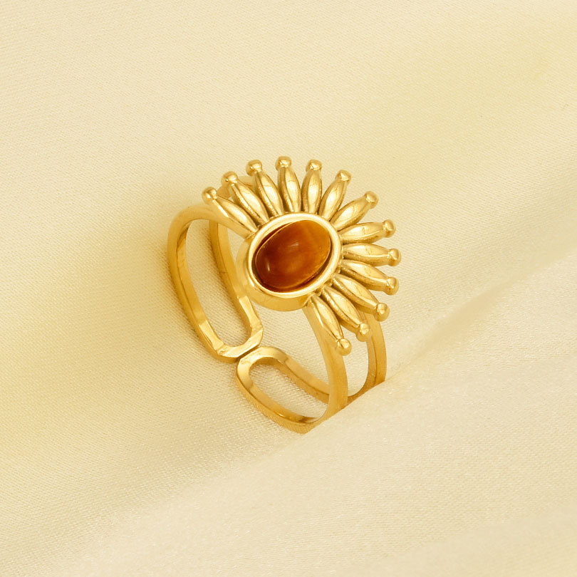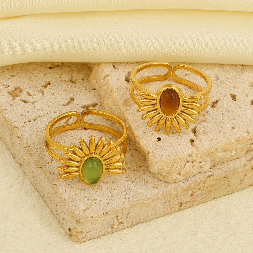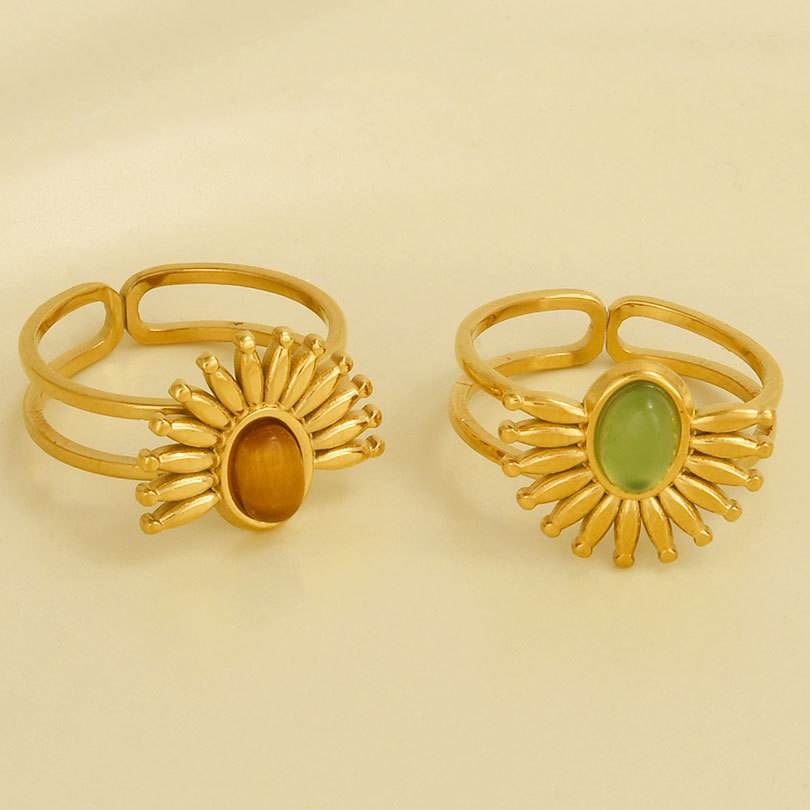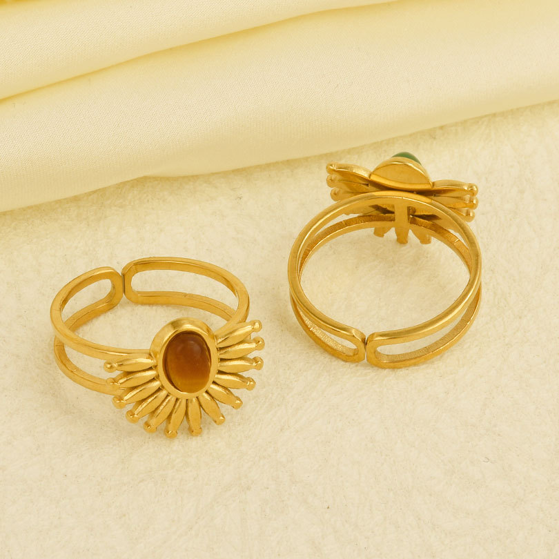 Gemstone Finger Ring, 304 Cruach dhosmálta, le Cloch Nádúrtha, dath an óir plated, jewelry faisin & ábhair éagsúla do rogha & unisex, dathanna níos mó le haghaidh rogha, Díolta De réir PC