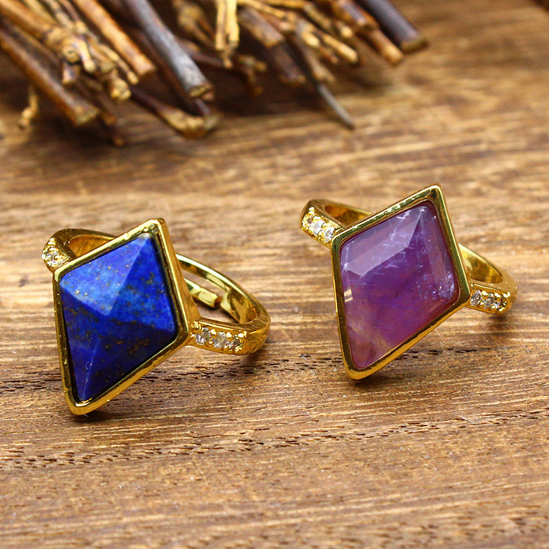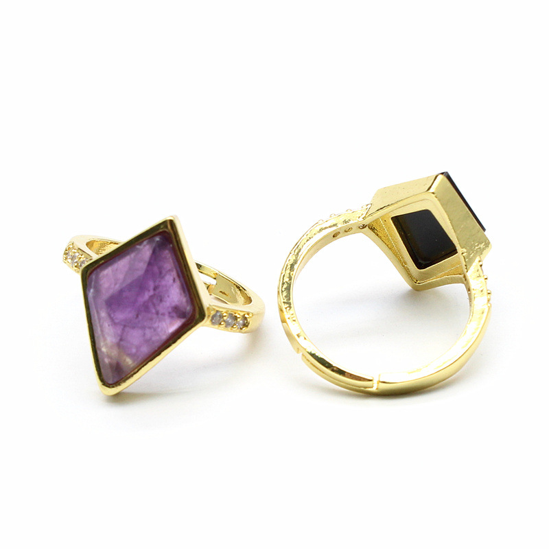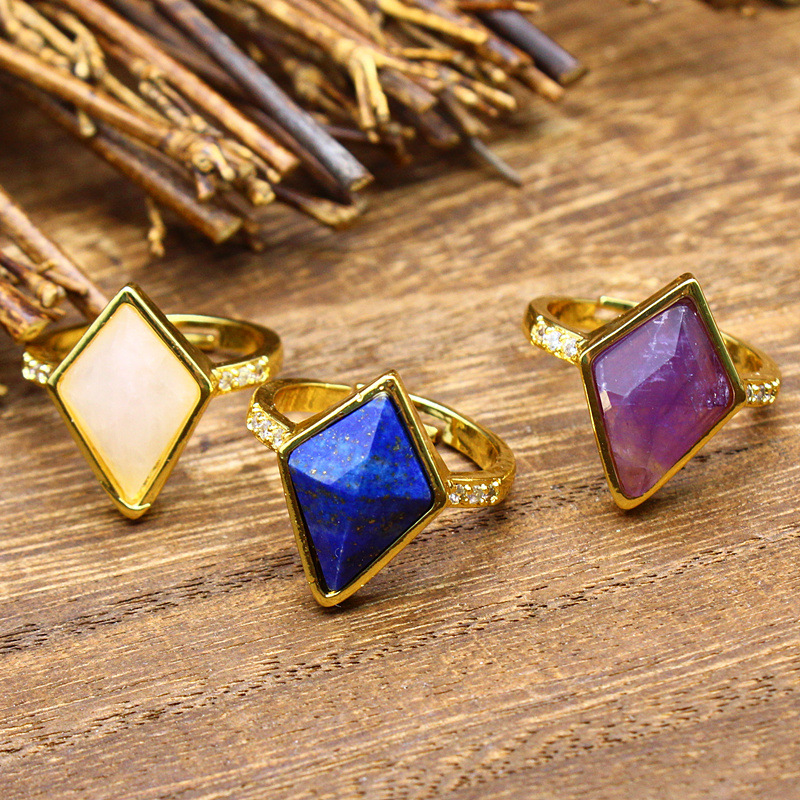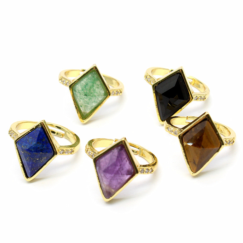 Gemstone Finger Ring, Sinc Alloy, le Cloch Nádúrtha, dath an óir plated, ábhair éagsúla do rogha & do bhean & le rhinestone, dathanna níos mó le haghaidh rogha, nicil, luaidhe & caidmiam saor in aisce, Díolta De réir PC