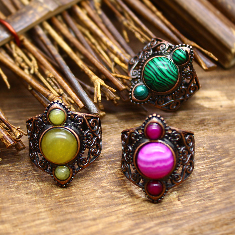 Gemstone Finger Ring, Cloch Nádúrtha, le Prás, plátáilte, ábhair éagsúla do rogha & unisex, dathanna níos mó le haghaidh rogha, nicil, luaidhe & caidmiam saor in aisce, 21x25mm, Díolta De réir PC