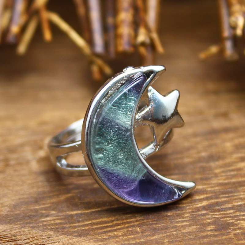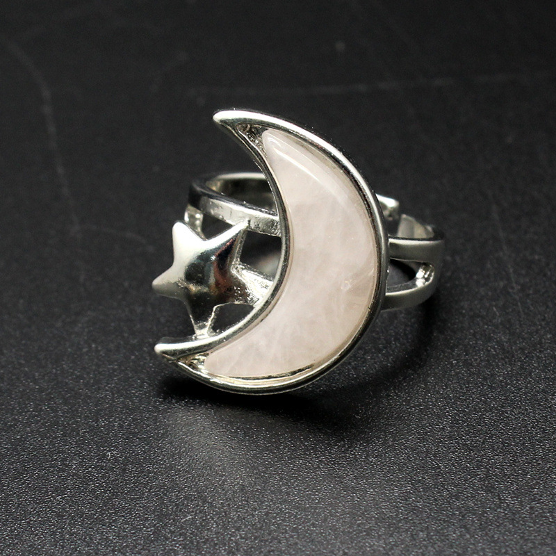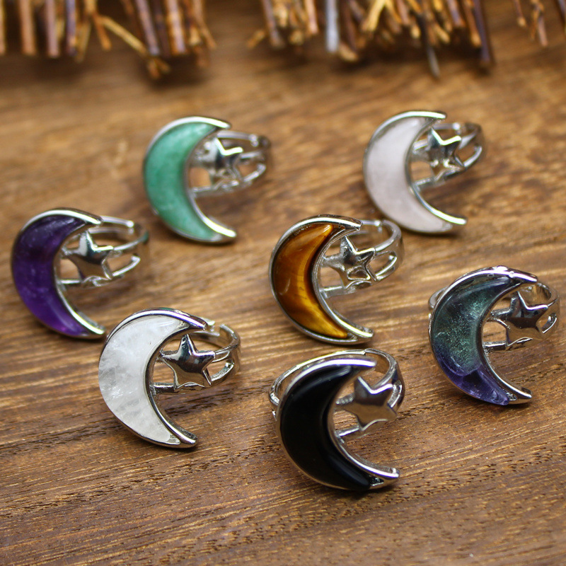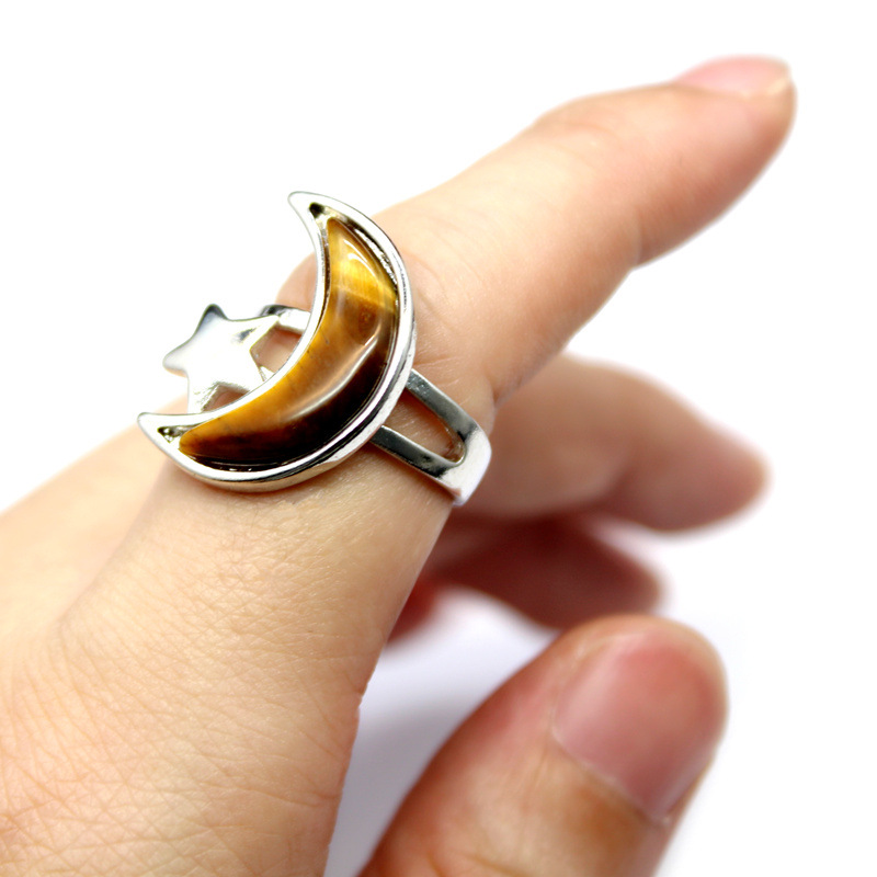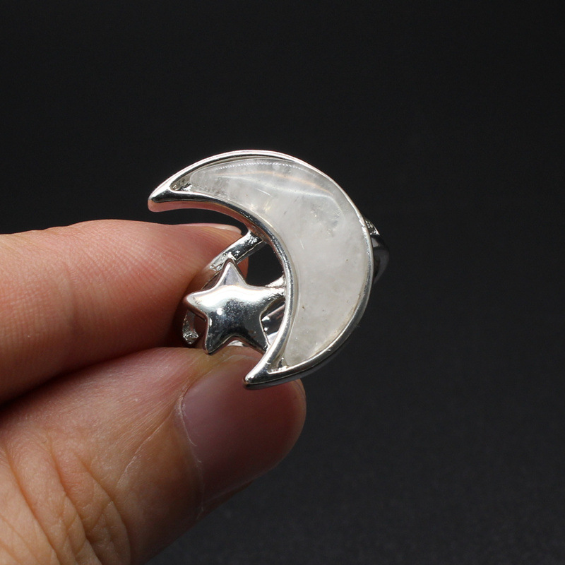 Gemstone Finger Ring, Prás, le Cloch Nádúrtha, Gealach, plátáilte, ábhair éagsúla do rogha & do bhean, dathanna níos mó le haghaidh rogha, nicil, luaidhe & caidmiam saor in aisce, 22x18mm, Díolta De réir PC