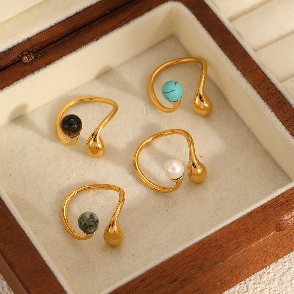 Gemstone Finger Ring, 304 Cruach dhosmálta, le Cloch Nádúrtha, dath an óir plated, jewelry faisin & ábhair éagsúla do rogha & unisex, dathanna níos mó le haghaidh rogha, Díolta De réir PC