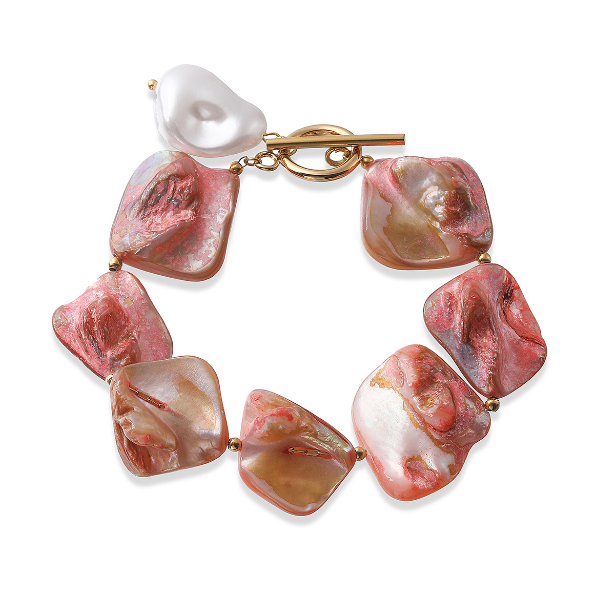 Bhlaosc Jewelry Bracelet, 304 Cruach dhosmálta, le Shell & Pearl Plaisteacha, plátáilte, jewelry faisin & do bhean, bándearg, Díolta De réir PC