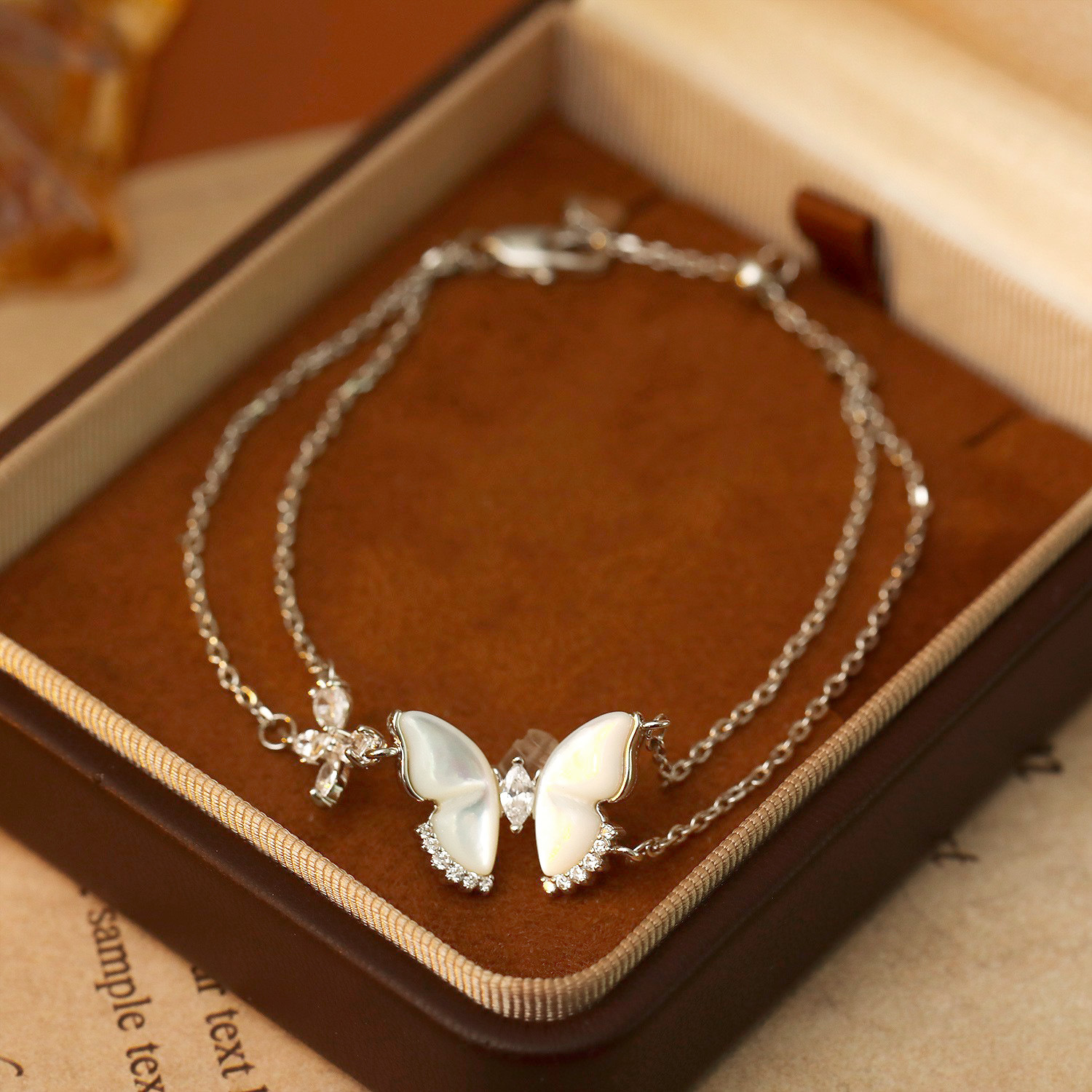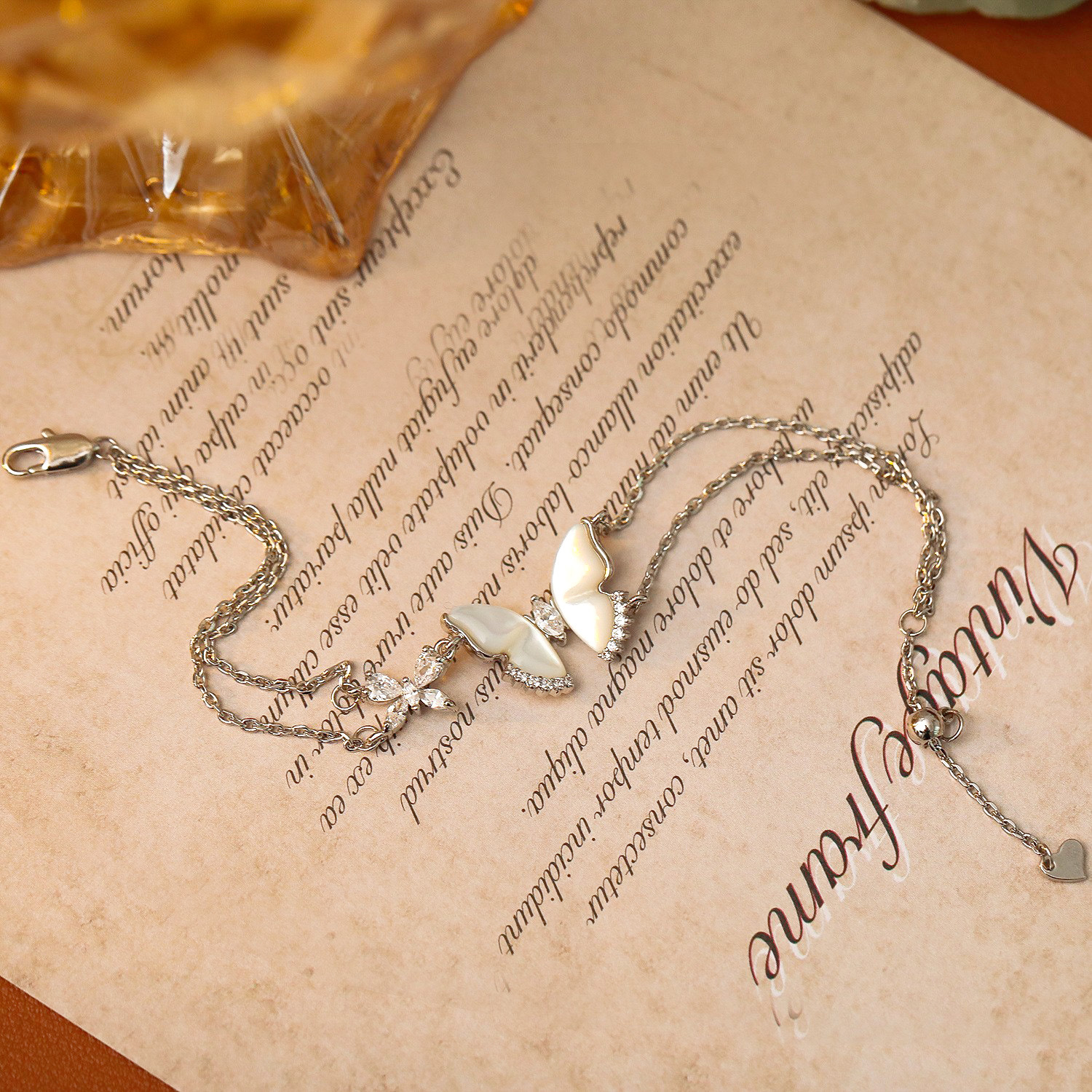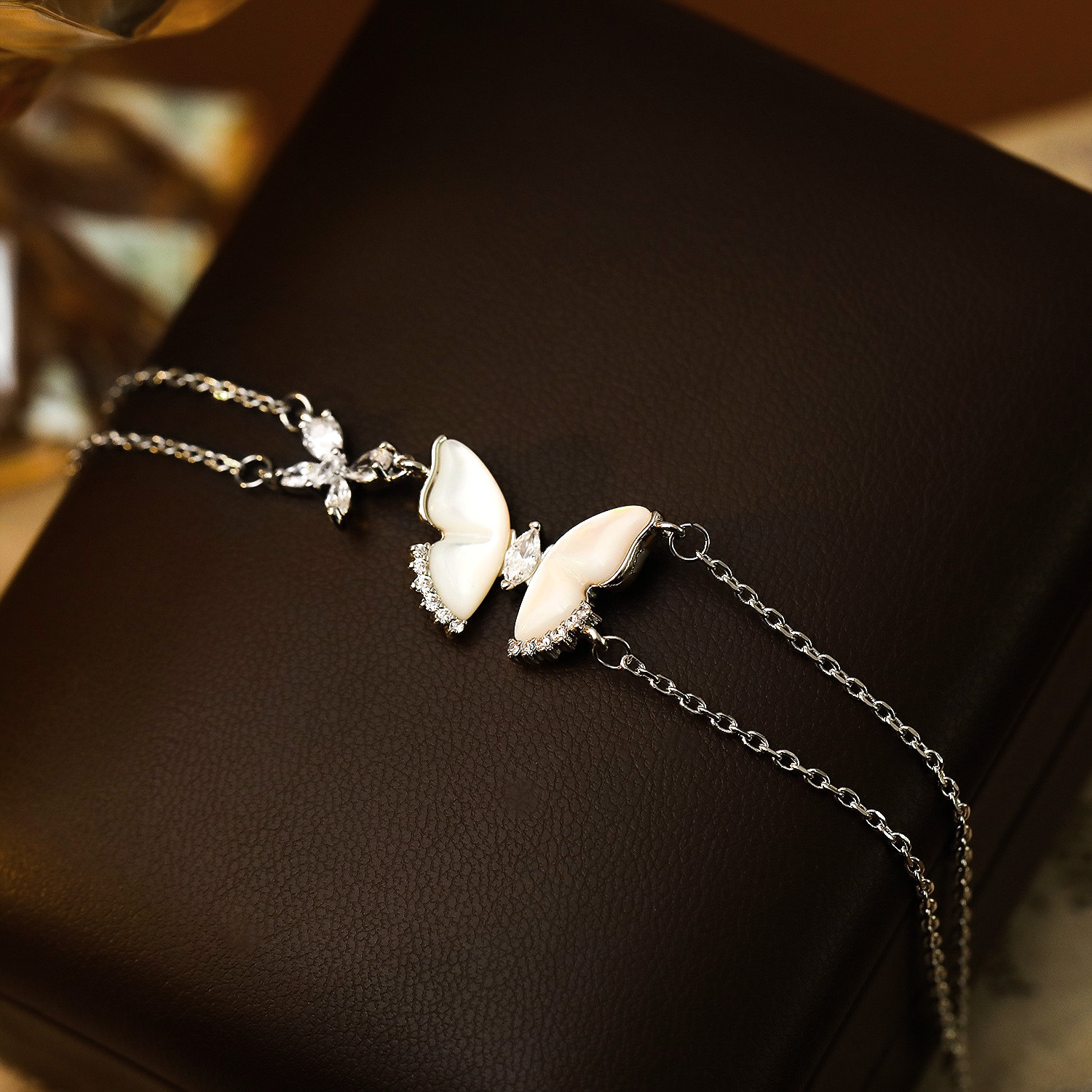 Bhlaosc Jewelry Bracelet, Prás, le Bán Shell, le 3.5cm slabhra extender, Féileacán, plátáilte, Ciseal Dúbailte & micrea réiteach zirconia ciúbach & do bhean, dath platanam, The pendant is 1.4cm long and 1.9cm wide, Fad 16 cm, Díolta De réir PC
