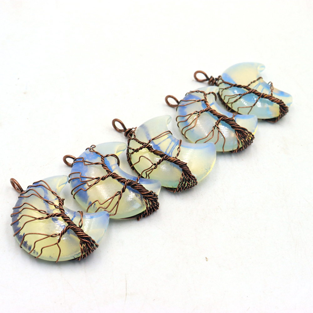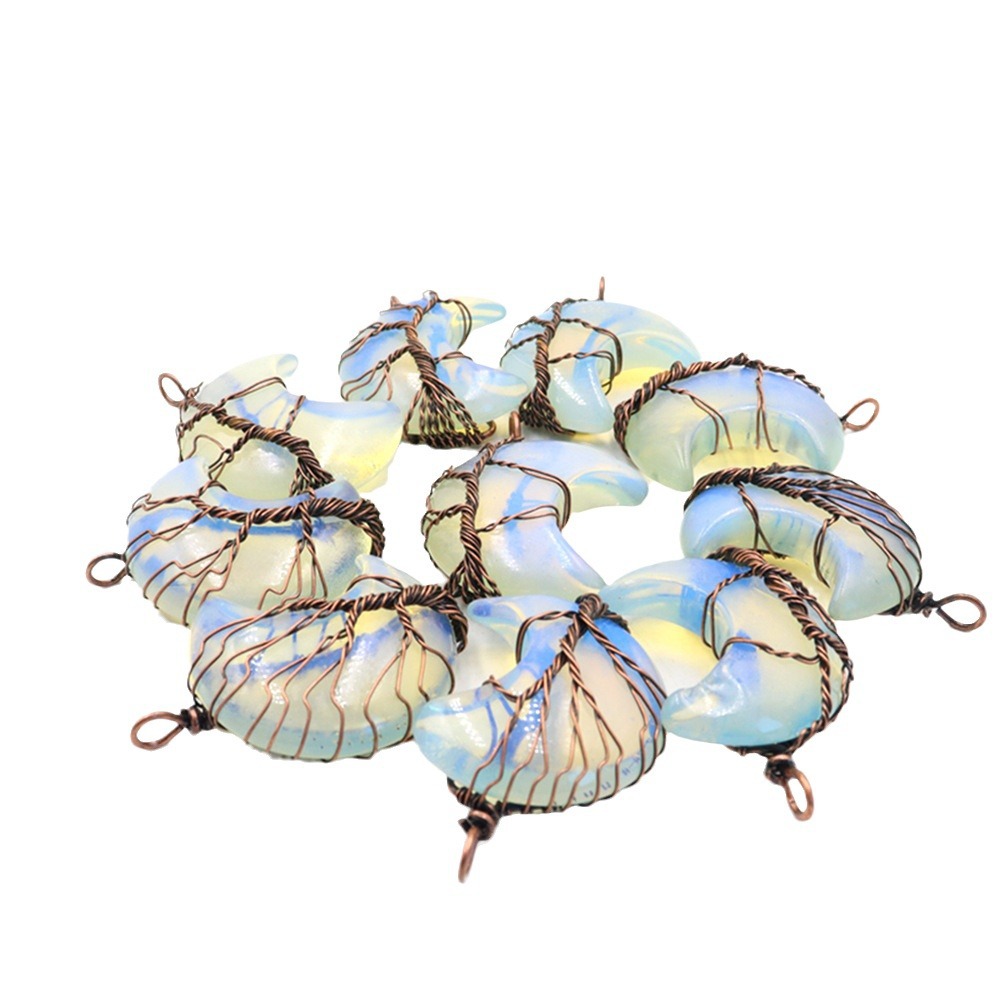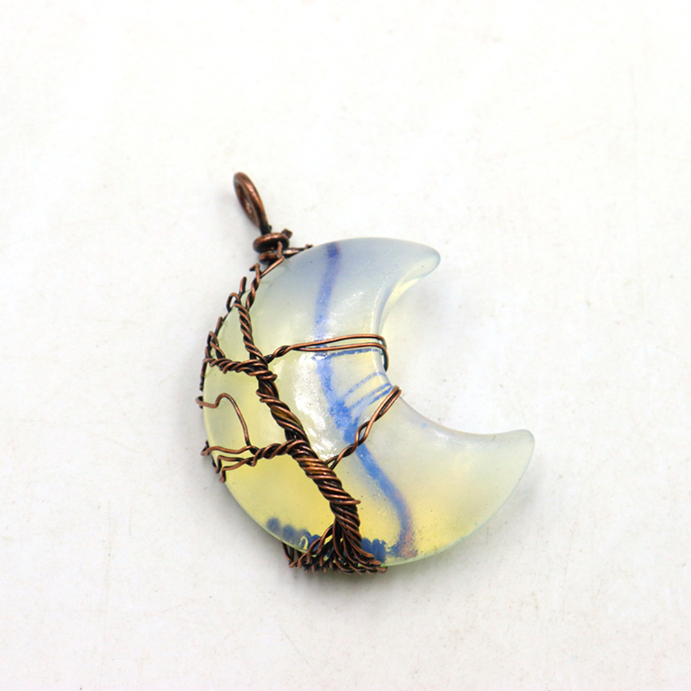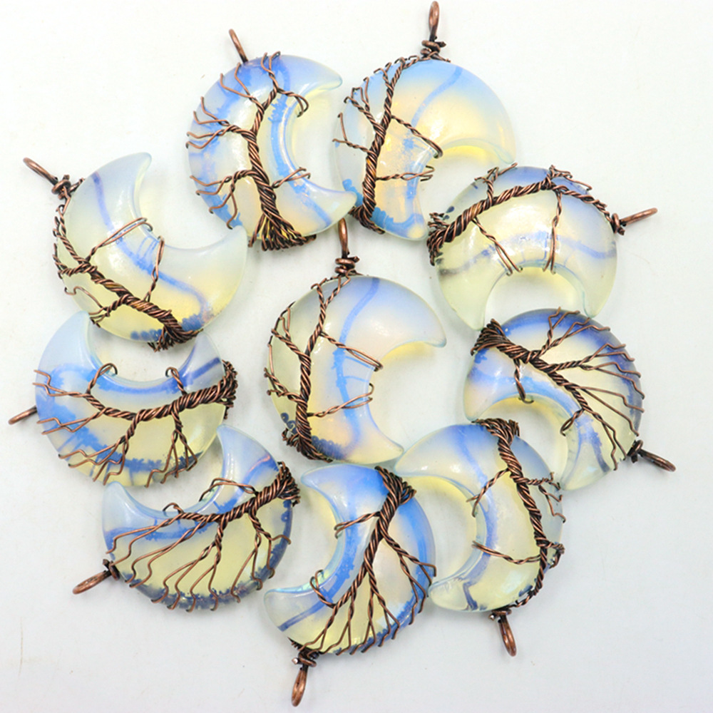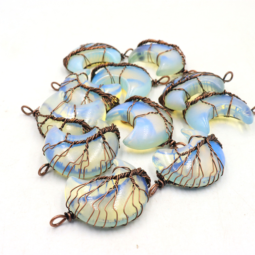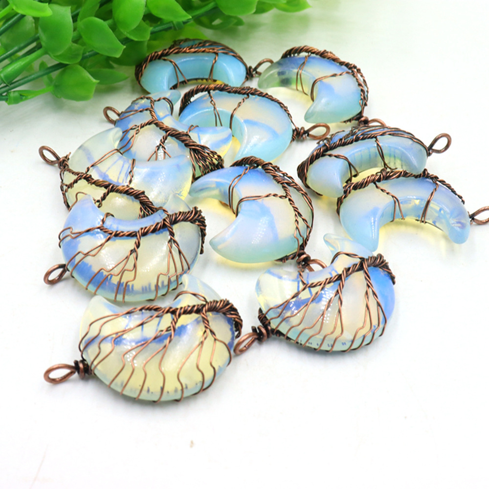 Pendants Gemstone Jewelry, Cloch Nádúrtha, le Prás, Gealach, plátáilte, DIY, nicil, luaidhe & caidmiam saor in aisce, 35x45mm, Díolta De réir PC
