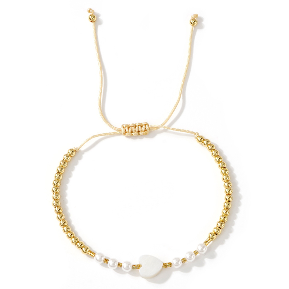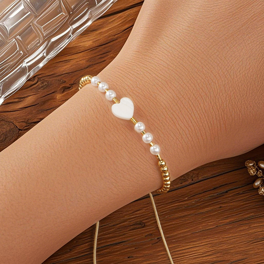 Jewelry Cruach dhosmálta Bracelet, 304 Cruach dhosmálta, le Corda Snaidhmthe & Pearl Plaisteacha, Croí, dath an óir plated, Inchoigeartaithe & do bhean, dathanna níos mó le haghaidh rogha, Díolta De réir Socraigh