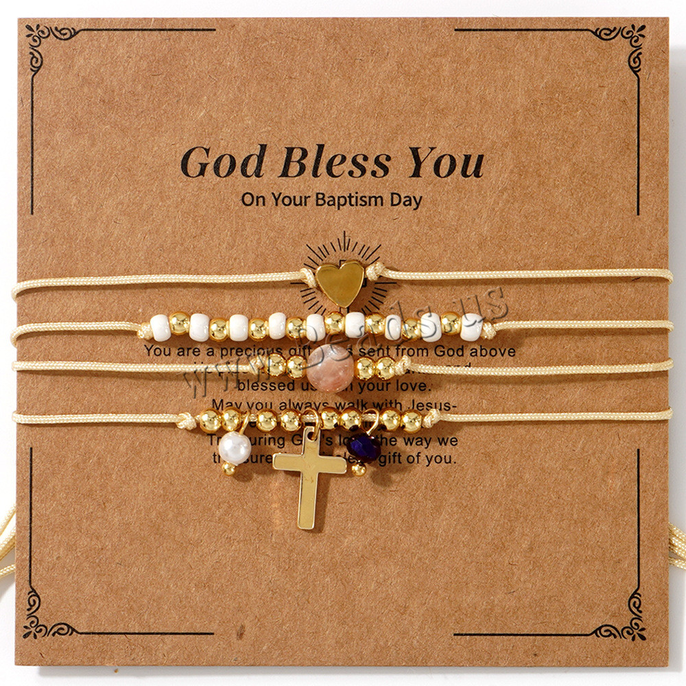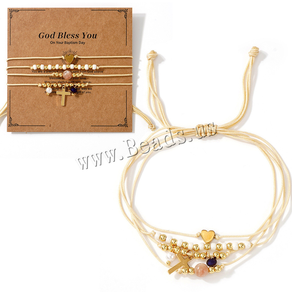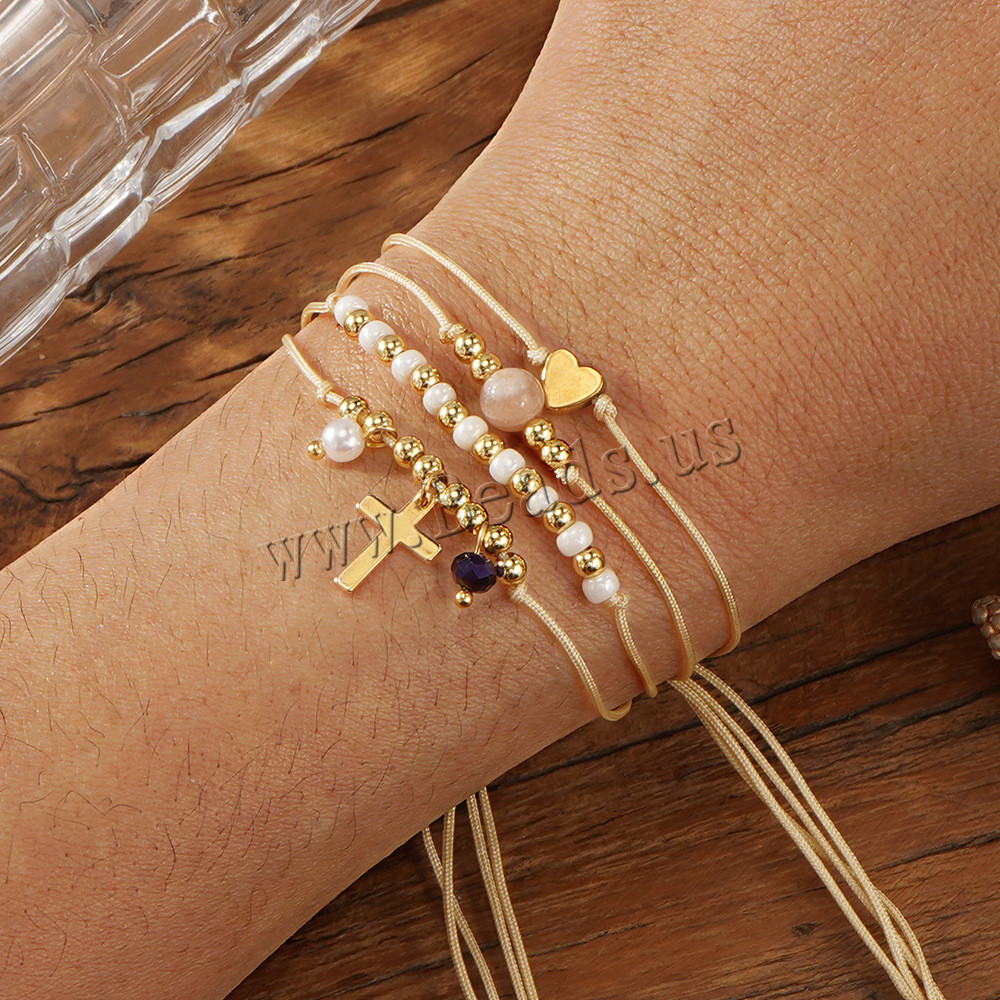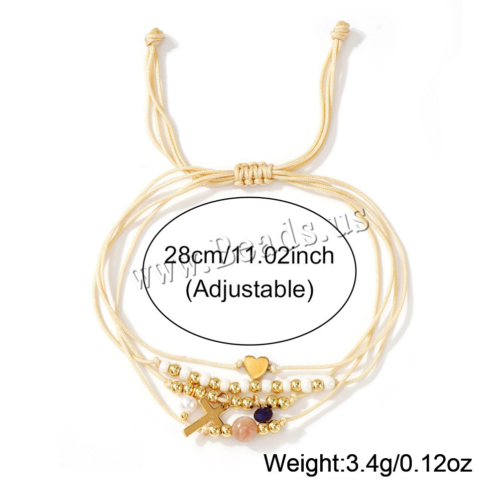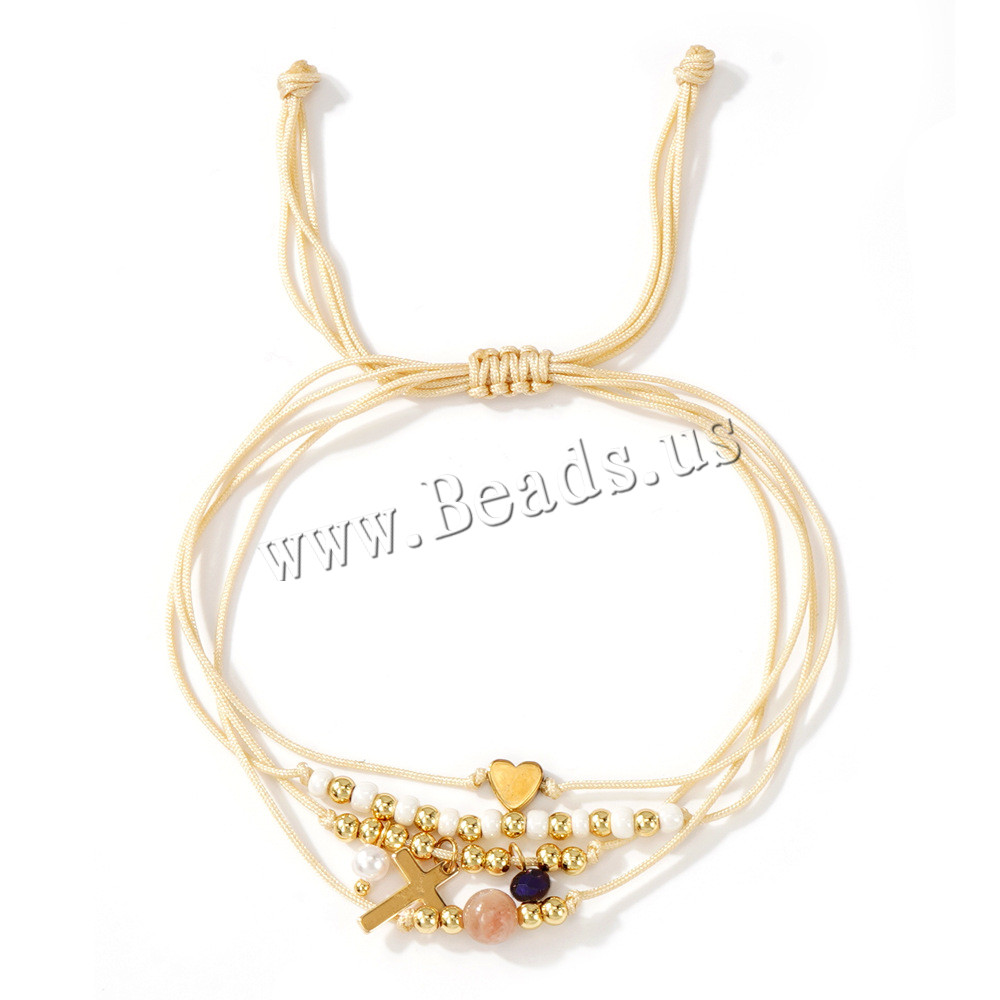 Jewelry Cruach dhosmálta Bracelet, 304 Cruach dhosmálta, le Seedbead & Pearl Plaisteacha, Cross, dath an óir plated, Inchoigeartaithe & do bhean, dathanna níos mó le haghaidh rogha, Díolta De réir PC