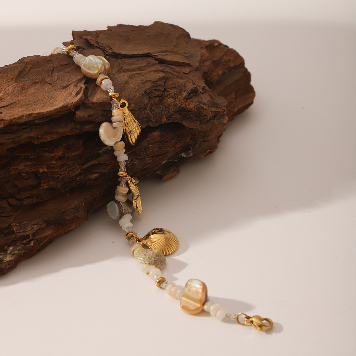 Jewelry Cruach dhosmálta Bracelet, 304 Cruach dhosmálta, le Coirníní Gloine & Shell Pearl, plátáilte, jewelry faisin & do bhean, órga, Díolta De réir PC