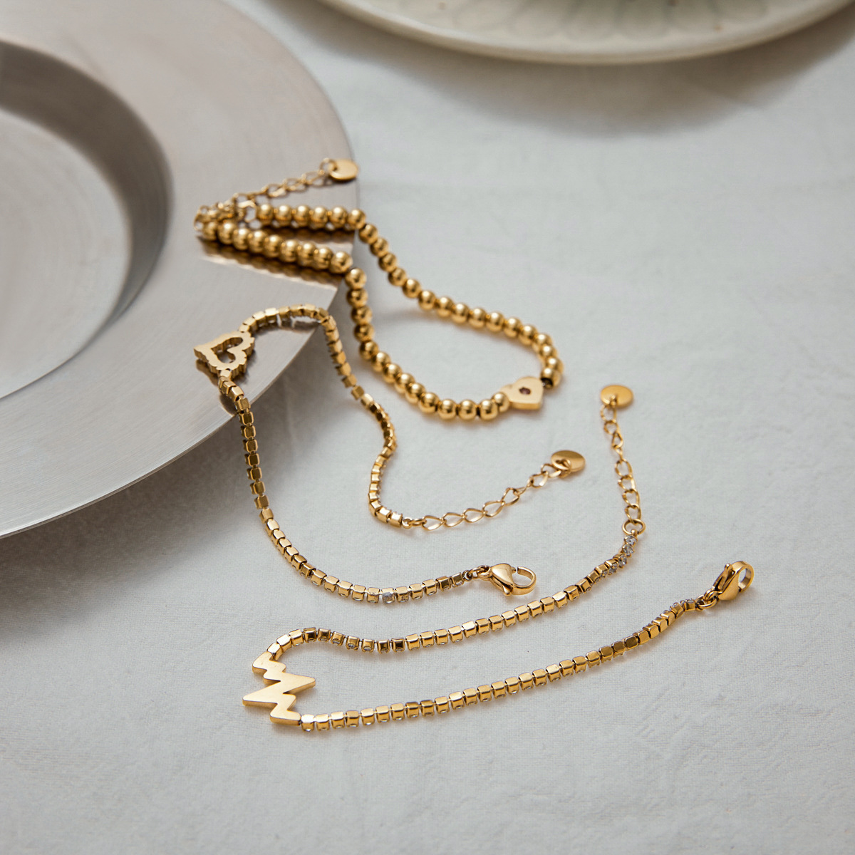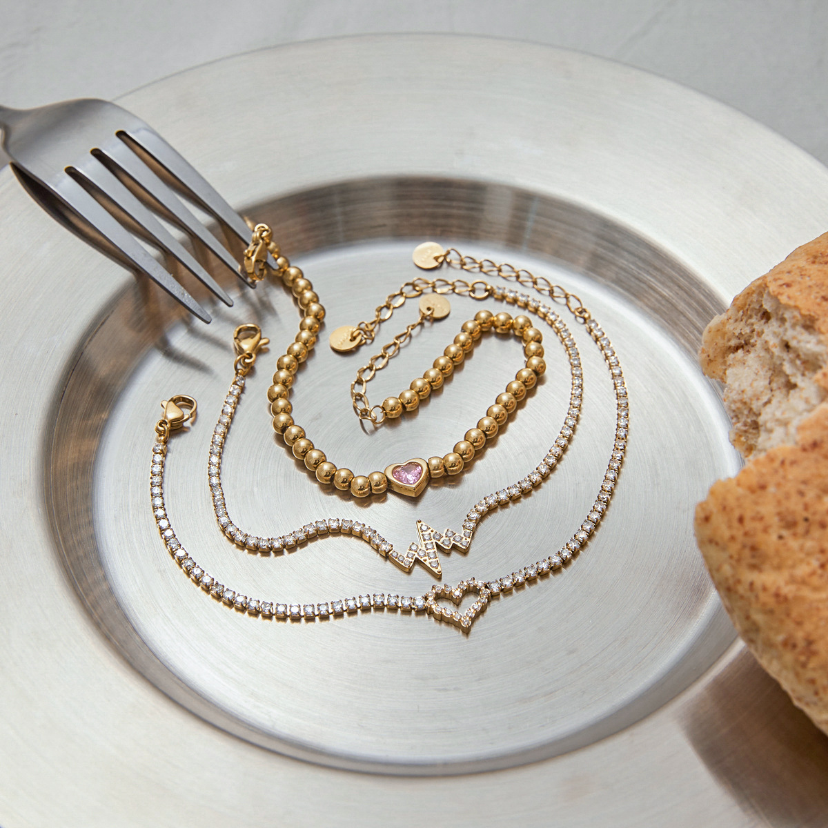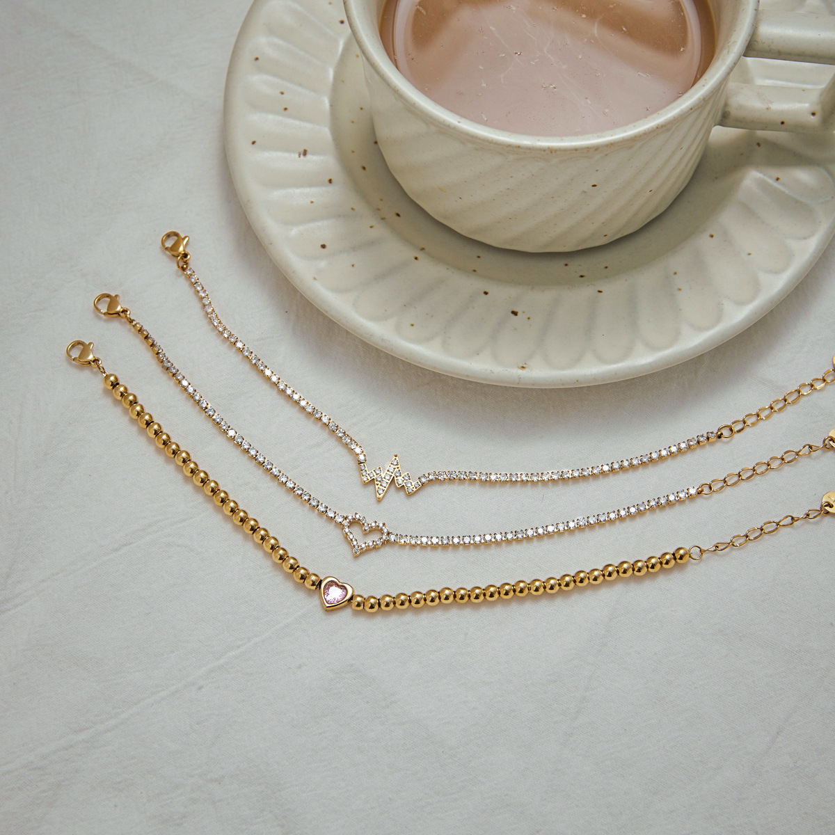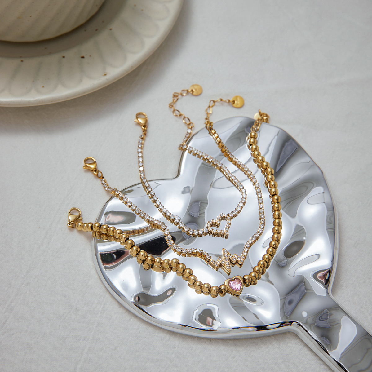 Jewelry Cruach dhosmálta Bracelet, 304 Cruach dhosmálta, le Ciúbach Zirconia, plátáilte, jewelry faisin & stíleanna éagsúla do rogha & do bhean, órga, Díolta De réir PC