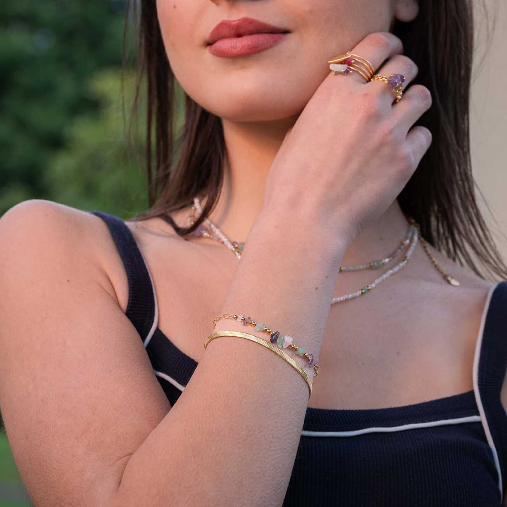 Jewelry Cruach dhosmálta Bracelet, 304 Cruach dhosmálta, le Cloch Nádúrtha, 18K ór plátáilte, Ciseal Dúbailte & jewelry faisin & do bhean, Díolta De réir PC