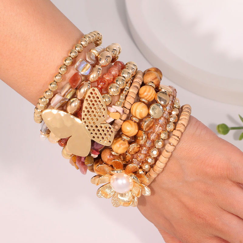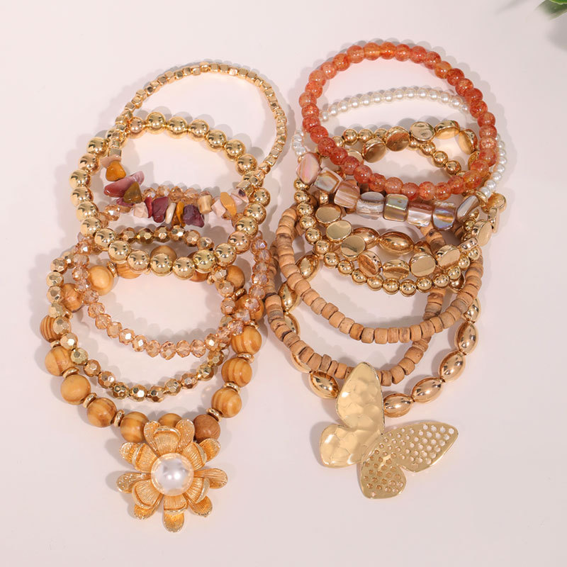 Jewelry Bracelet Faisean, Adhmad, le Cloch Nádúrtha & Gloine & Copper Brataithe Plaisteacha & Pearl Plaisteacha & Sinc Alloy, jewelry faisin, dathanna níos mó le haghaidh rogha, 12ríomhairí pearsanta/Socraigh, Díolta De réir Socraigh