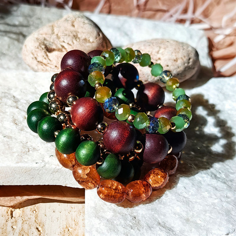 Jewelry Bracelet Faisean, Adhmad, le Gloine & Copper Brataithe Plaisteacha, jewelry faisin, dathanna níos mó le haghaidh rogha, 5ríomhairí pearsanta/Socraigh, Díolta De réir Socraigh