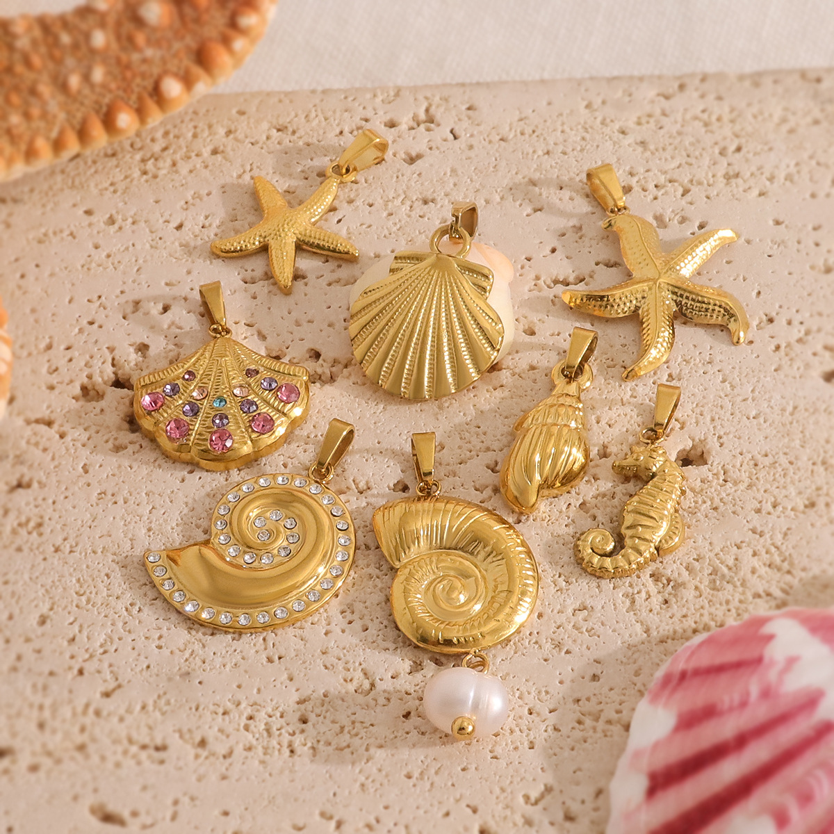 Pendants Jewelry Cruach dhosmálta, 304 Cruach dhosmálta, le Shell, Cruth Difriúil do Rogha & DIY & micrea réiteach zirconia ciúbach, dathanna níos mó le haghaidh rogha, 3ríomhairí pearsanta/Mála, Díolta De réir Mála