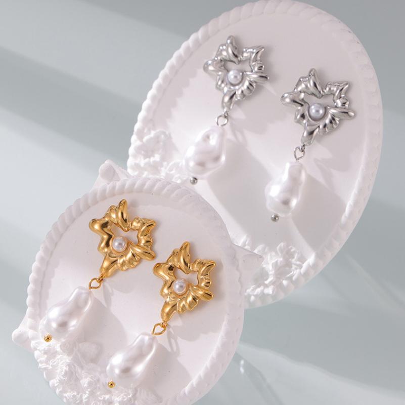 Tíotáiniam Cruach Earring, Cruach Tíotáiniam, le Pearl Plaisteacha, plátáilte, jewelry faisin & do bhean & log, dathanna níos mó le haghaidh rogha, Díolta De réir Péire