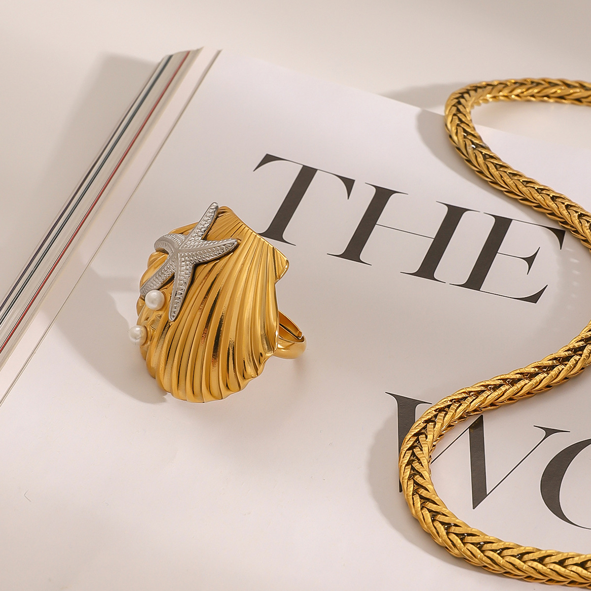 Cruach dhosmálta Graí Earrings, 304 Cruach dhosmálta, le Pearl Plaisteacha, Shell, dath an óir plated, jewelry faisin, órga, Díolta De réir PC