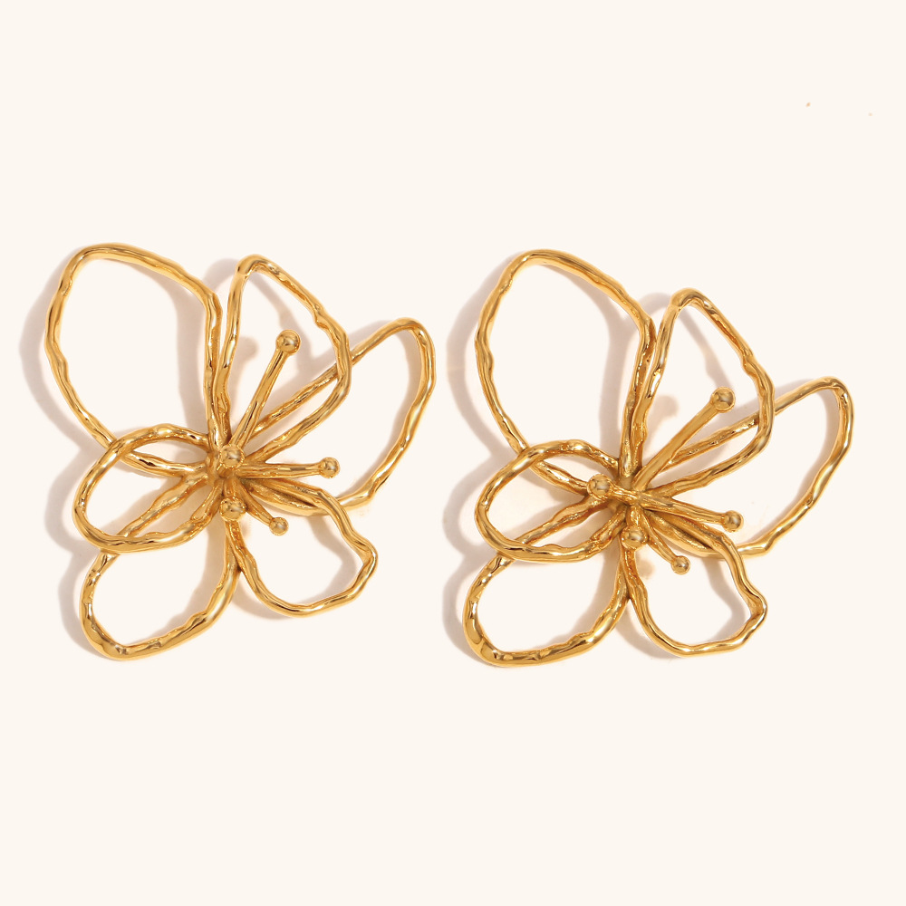 Cruach dhosmálta Graí Earrings, 304 Cruach dhosmálta, Flower, dath an óir plated, do bhean, Díolta De réir Péire